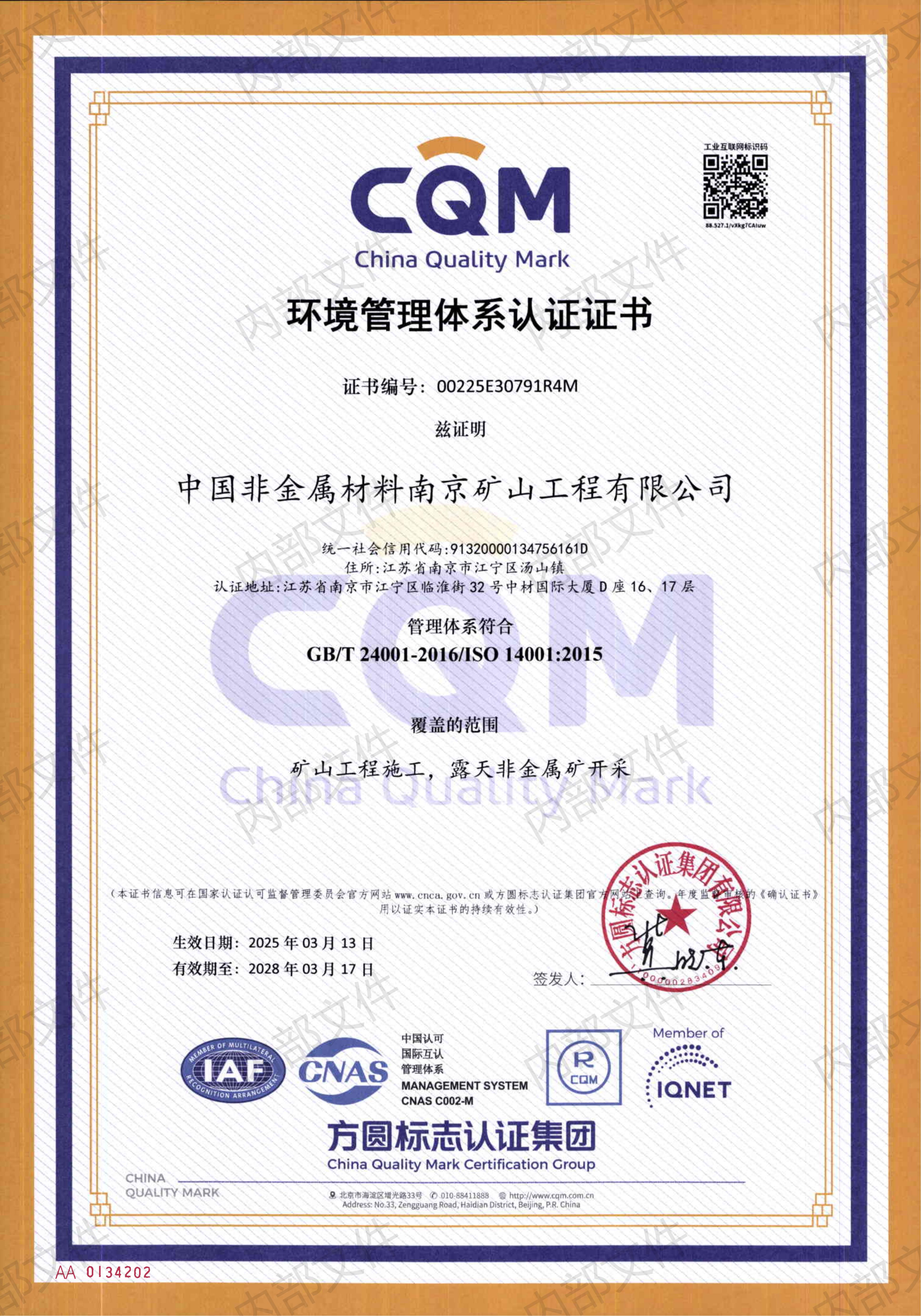 礦山工程施工總承包壹級(jí)資質(zhì)