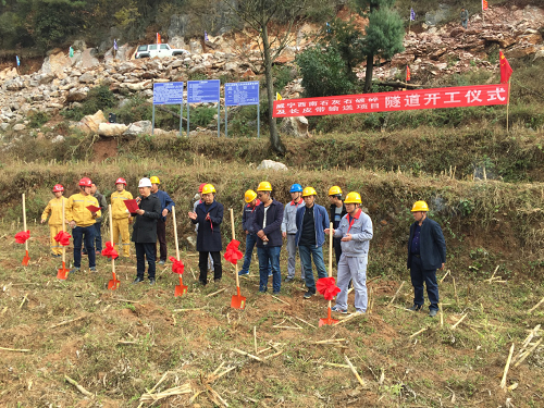 2018年11月11日上午十點,我公司承建的貴州威寧西南水泥有限公司石灰石破碎及輸送長皮帶項目隧道工程在隧道進口處舉行了開工儀式,業(yè)主單位、金鐘鎮(zhèn)政府、監(jiān)理單位及我項目部參加了開工儀式。