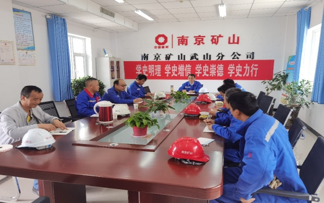 王總首先帶領(lǐng)大家學(xué)習(xí)了集團(tuán)、股份以及中材礦山黨史教育學(xué)習(xí)的方案和學(xué)習(xí)計劃,并結(jié)合南京礦山公司當(dāng)前形勢等方面深刻闡述了開展黨史學(xué)習(xí)教育的必要性和重要性,給大家上了一堂生動的專題黨課;同時他帶領(lǐng)大家學(xué)習(xí)了習(xí)近平《論中國共產(chǎn)黨歷史》、《中國共產(chǎn)黨簡史》等學(xué)習(xí)材料中的相關(guān)章節(jié)。他指出:一,今年是建黨百年,我們迎來了第二十個安全月,全員要時刻牢記安全生產(chǎn)紅線,“發(fā)展決不能以犧牲安全為代價”這必須作為一條不可逾越的紅線,生產(chǎn)必須安全,安全全員參與,在7月1日建黨節(jié)來臨之前,為祖國貢獻(xiàn)一份自己的力量。二,要把學(xué)習(xí)黨史同實際工作結(jié)合起來,總結(jié)經(jīng)驗,推動工作,把學(xué)習(xí)黨史同解決實際問題結(jié)合起來,做好學(xué)習(xí)成果轉(zhuǎn)化,從黨史中汲取力量,守初心擔(dān)使命。三,要深入學(xué)習(xí)習(xí)近平總書記關(guān)于國有企業(yè)改革發(fā)展和黨的建設(shè)的重要論述,堅持活學(xué)活用,做到對黨的思想理論、精神譜系、歷史經(jīng)驗有基本理解。