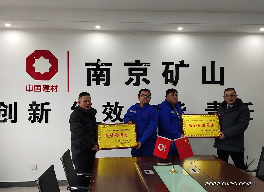 2022年1月20日,貴州黃平尖峰水泥有限公司副總經(jīng)理陸洪正、黨委副書記錢江、質(zhì)管部經(jīng)理陳磊濤一行到礦山舉行了2021年“優(yōu)秀合同方”和“安全先進單位”的授牌儀式,并對公司進行冬季慰問。