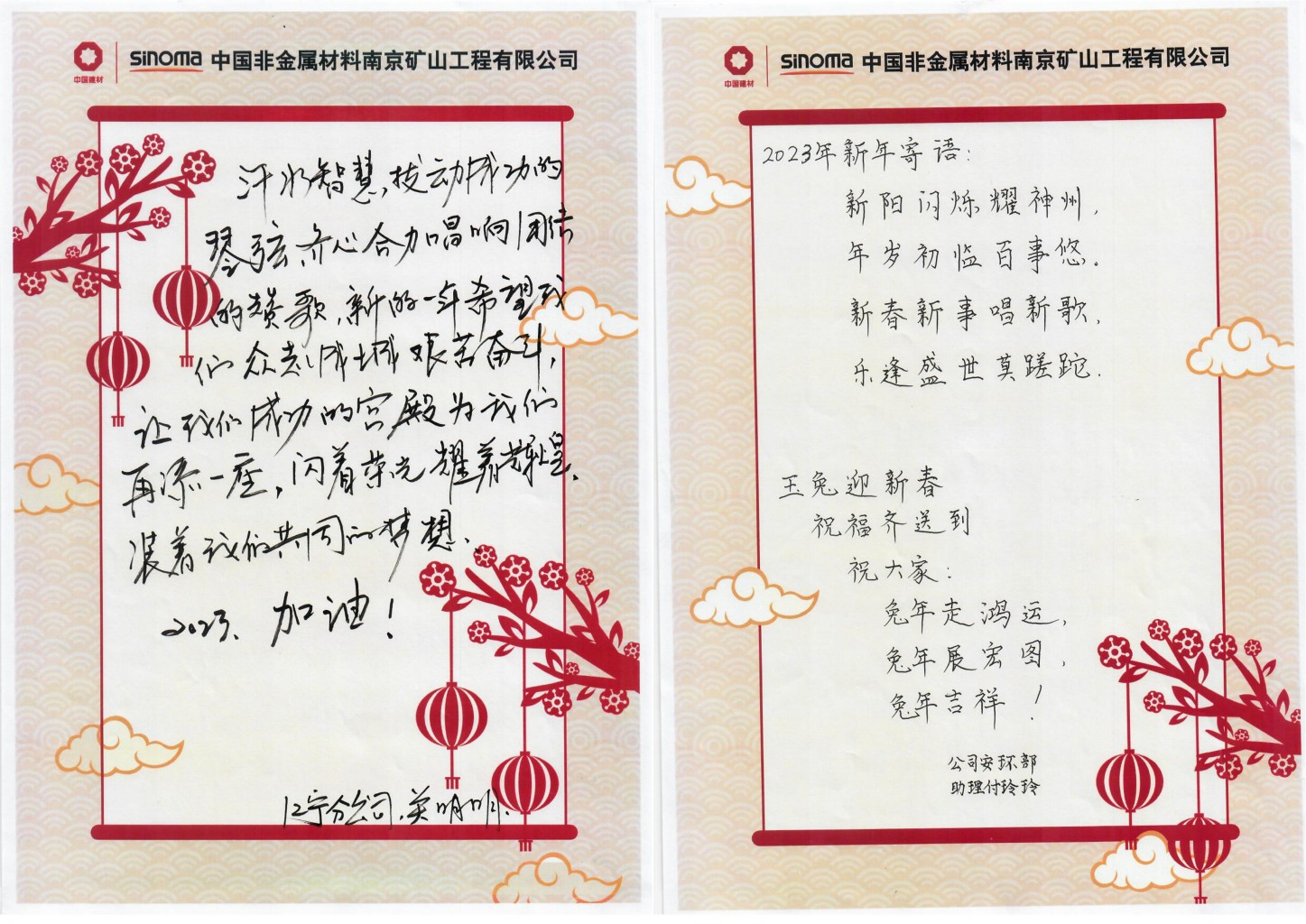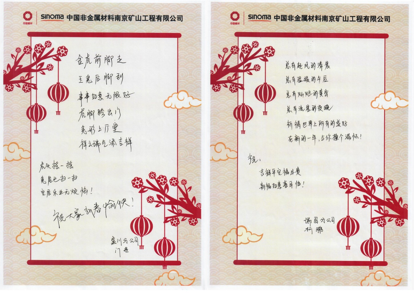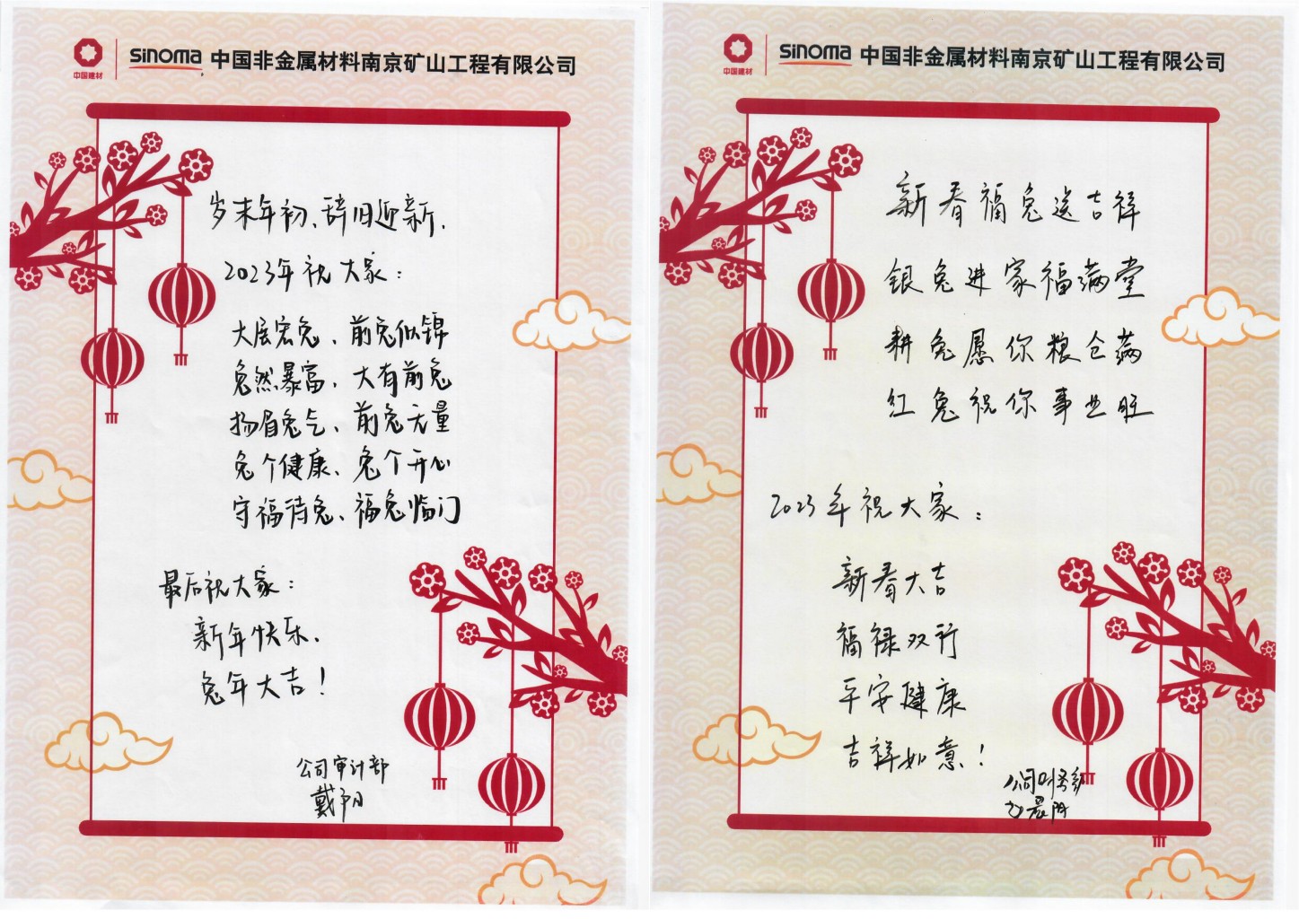 “瑞雪飄飄辭舊歲,紅梅款款報(bào)新春”為迎接即將到來(lái)的2023年新春佳節(jié),營(yíng)造濃厚的節(jié)慶氛圍,1月11-20日,公司開(kāi)展“翰墨迎春 和諧南礦”手寫(xiě)送祝福活動(dòng)。