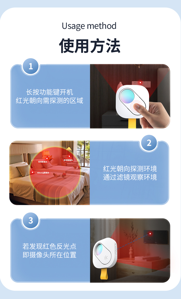 科密KD05 酒店攝像頭探測器 防拍攝檢測儀可充電紅外線防監(jiān)控掃描檢測器 賓館民宿 白色