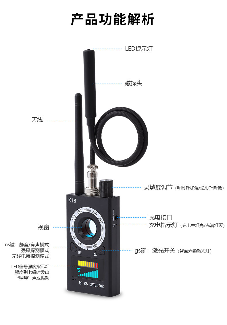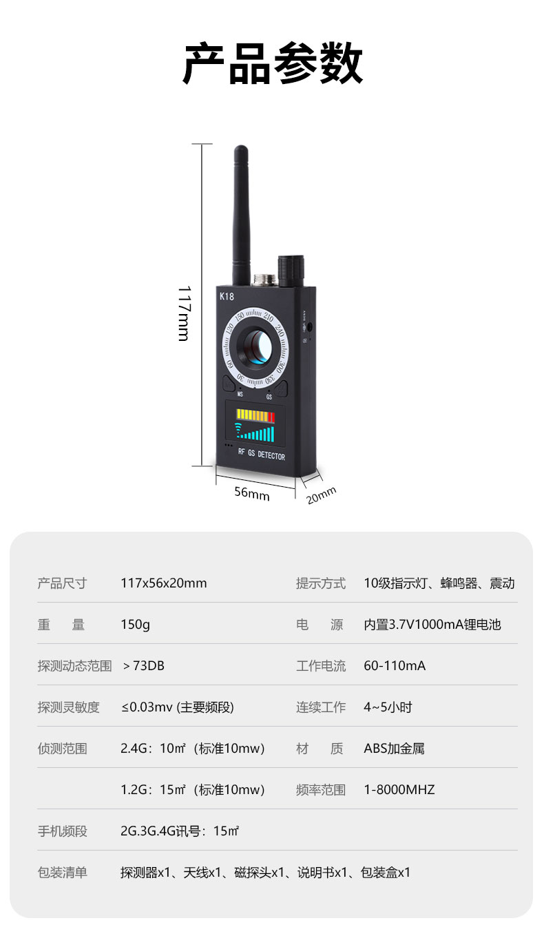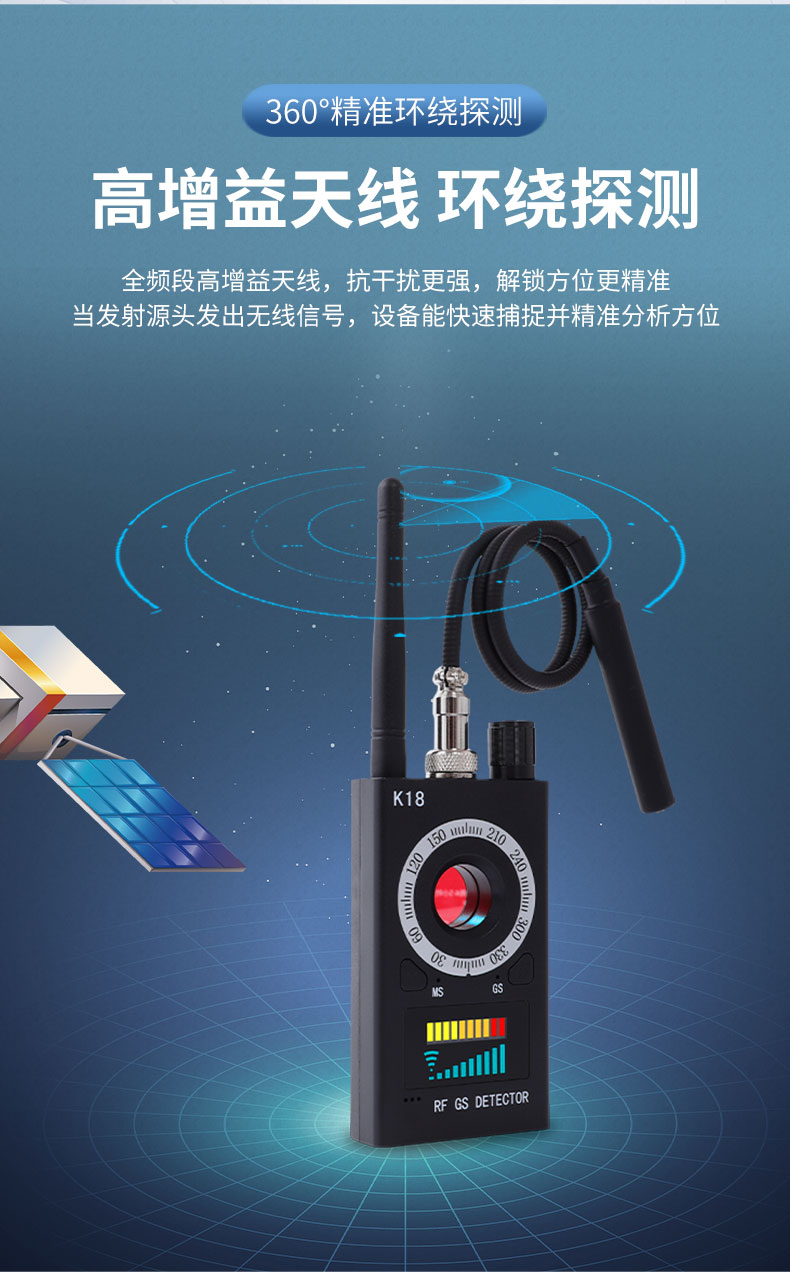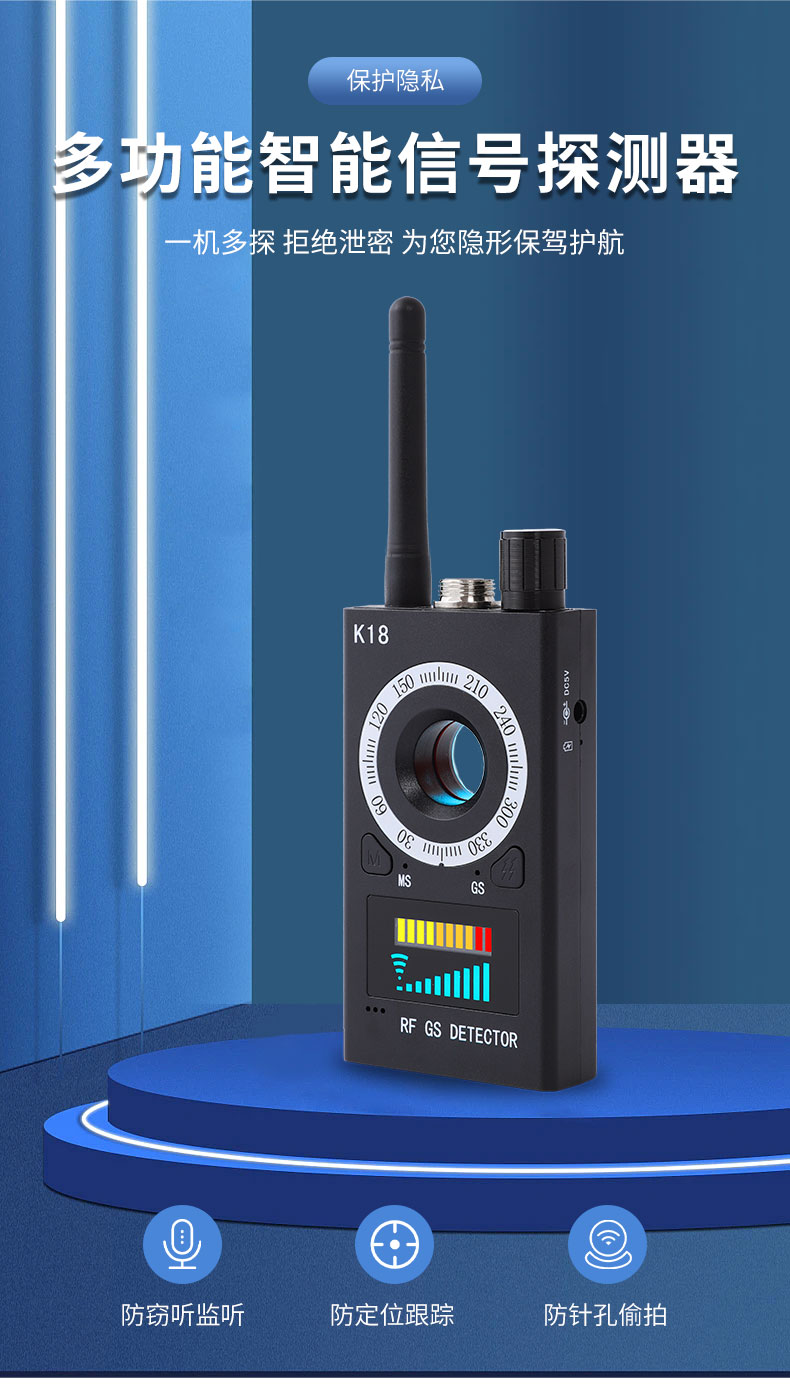 科密攝像頭探測器酒店防鏡頭偷拍反監(jiān)控竊聽汽車北斗gps探測K18