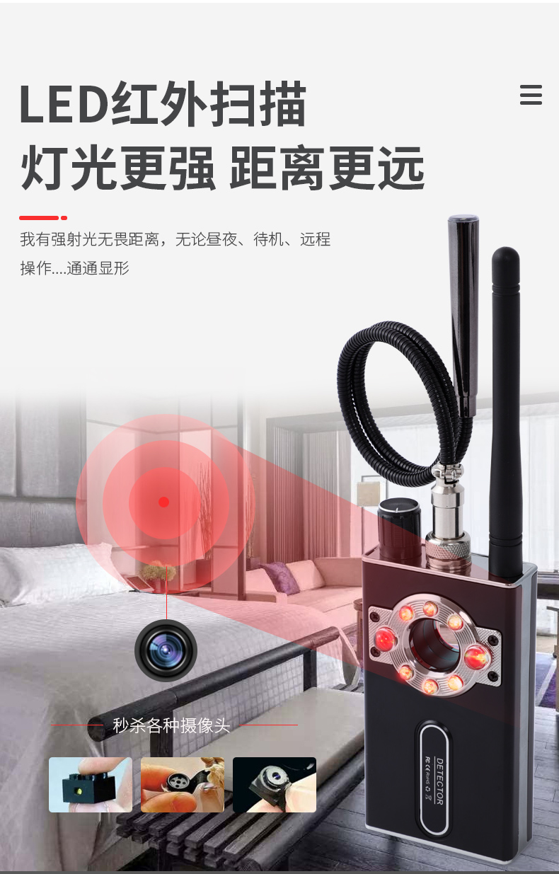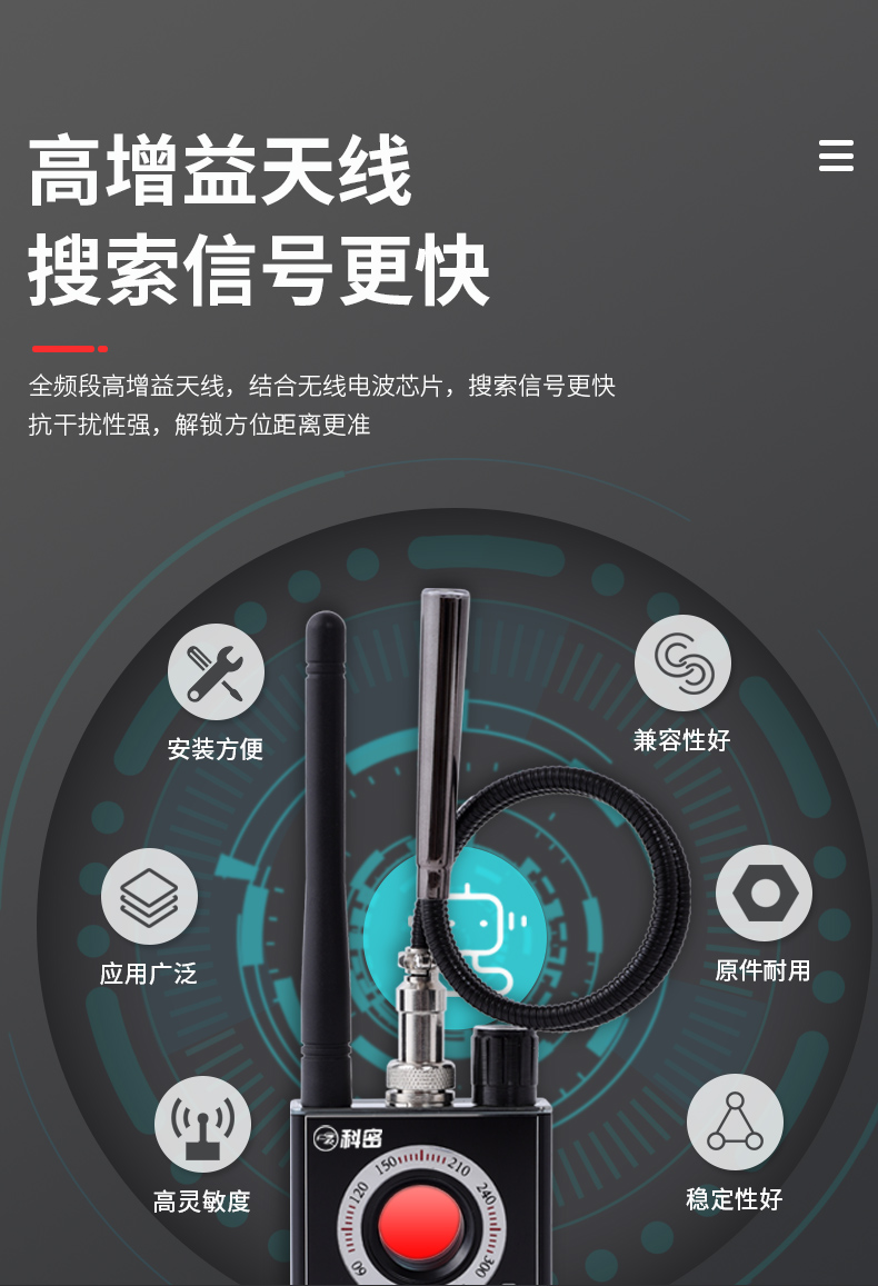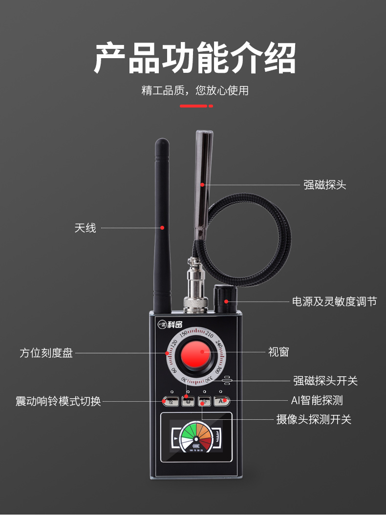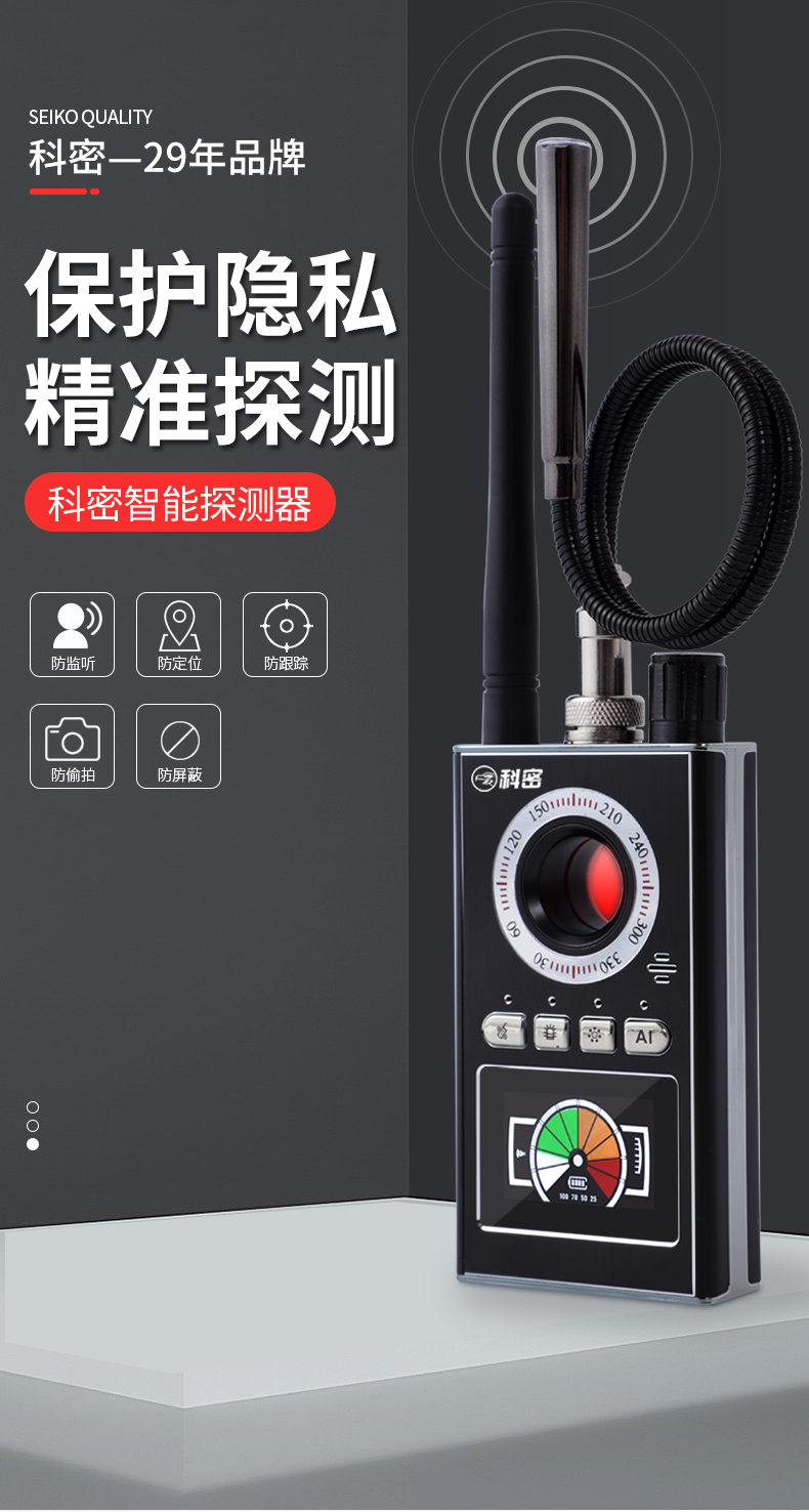 科密攝像頭探測(cè)器防酒店鏡頭偷攝監(jiān)聽(tīng)反竊聽(tīng)北斗gps跟蹤器K88