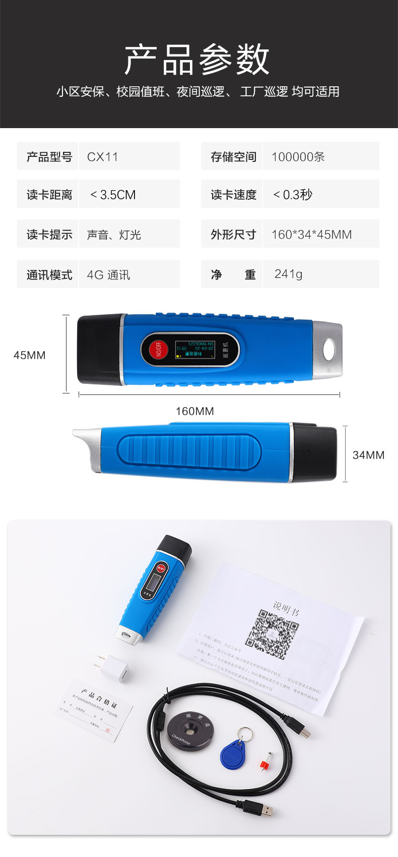 科密 CX11 4G傳輸實(shí)時(shí)上傳巡更機(jī) 照明巡更棒 電子巡更系統(tǒng) 巡邏棒 帶顯示屏 語音報(bào)讀
