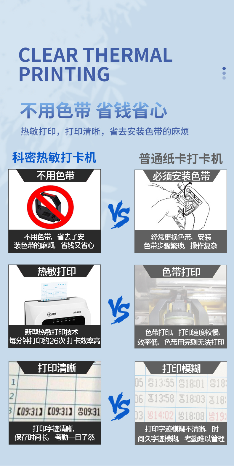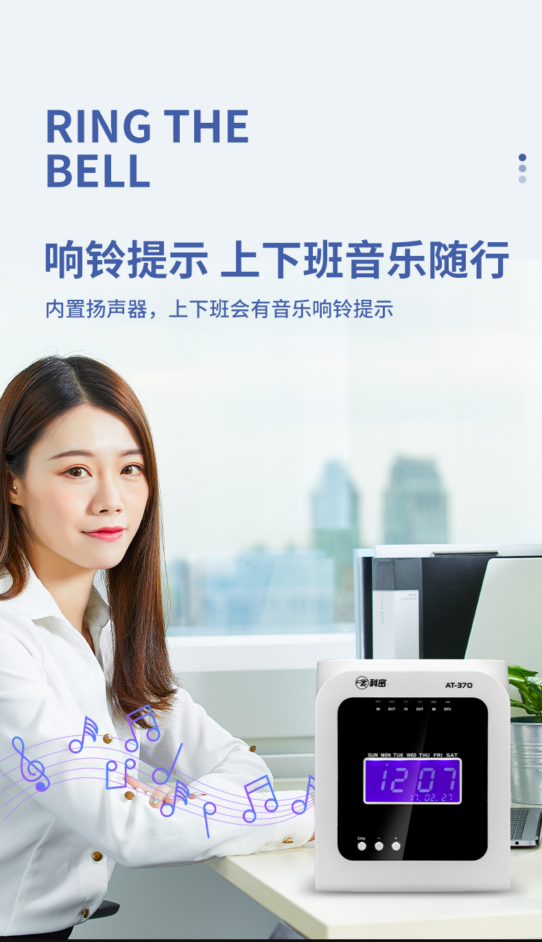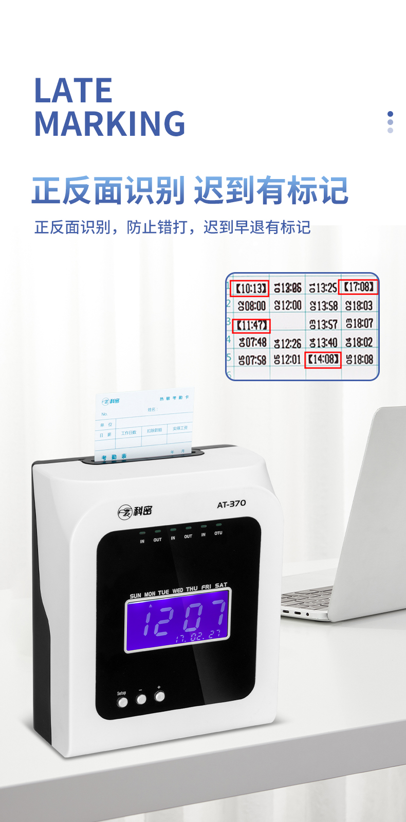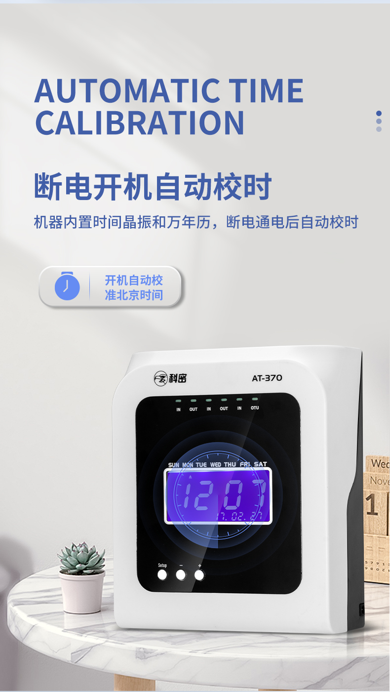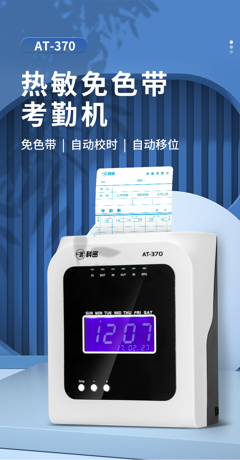 科密熱敏打卡機(jī)紙卡式卡片考勤機(jī)卡紙打卡機(jī)員工上下班出勤工廠工地企業(yè)簽到鐘打卡鐘插卡式AT370