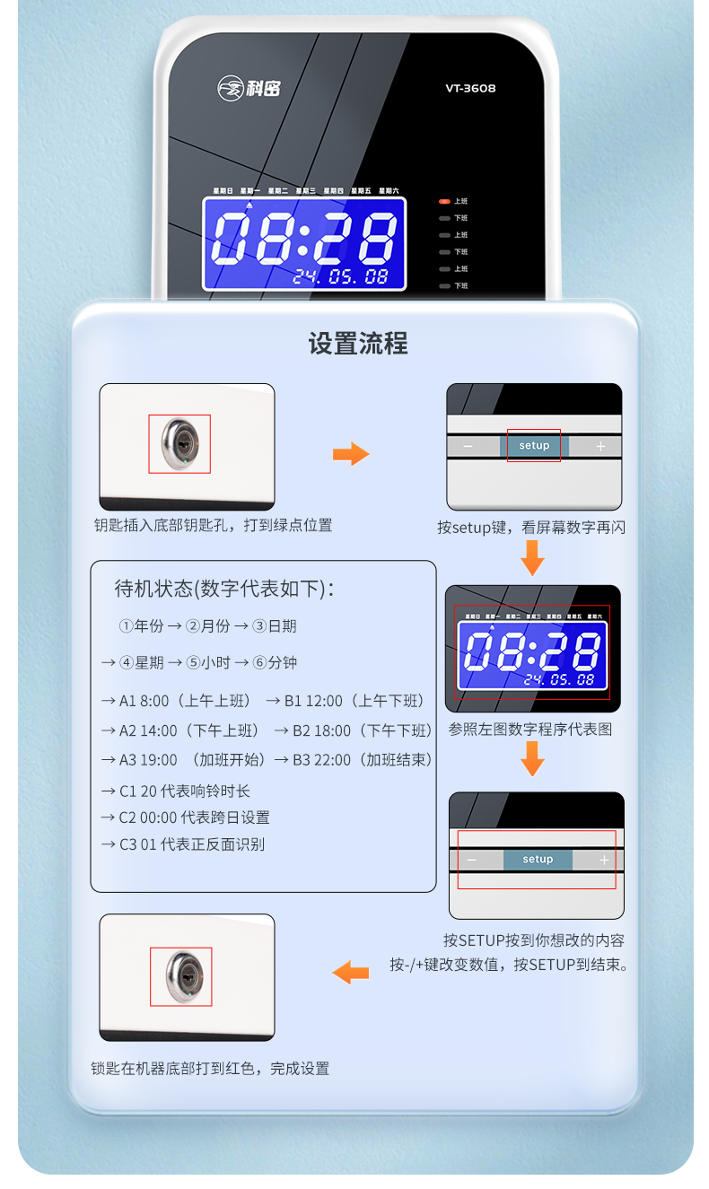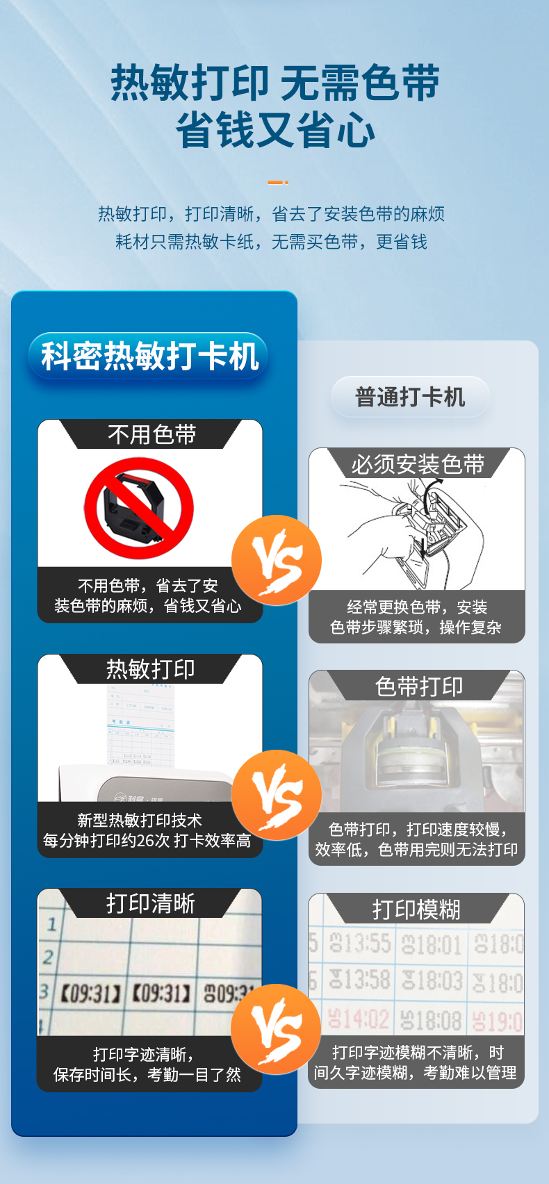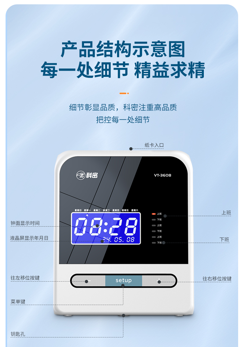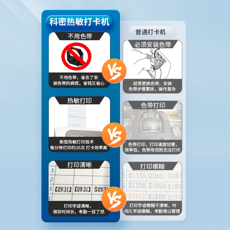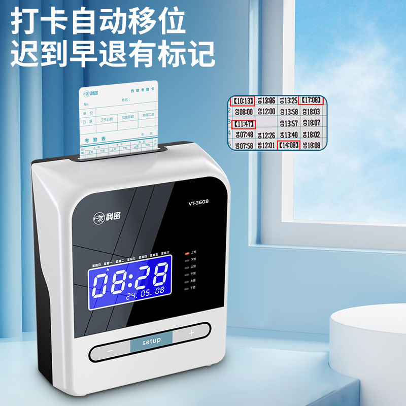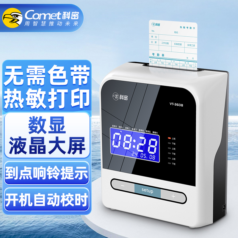 科密(comet) VT-3608 打卡機考勤機卡鐘 微電腦考勤機 熱敏卡紙免色帶打卡機打卡鐘 自動移位