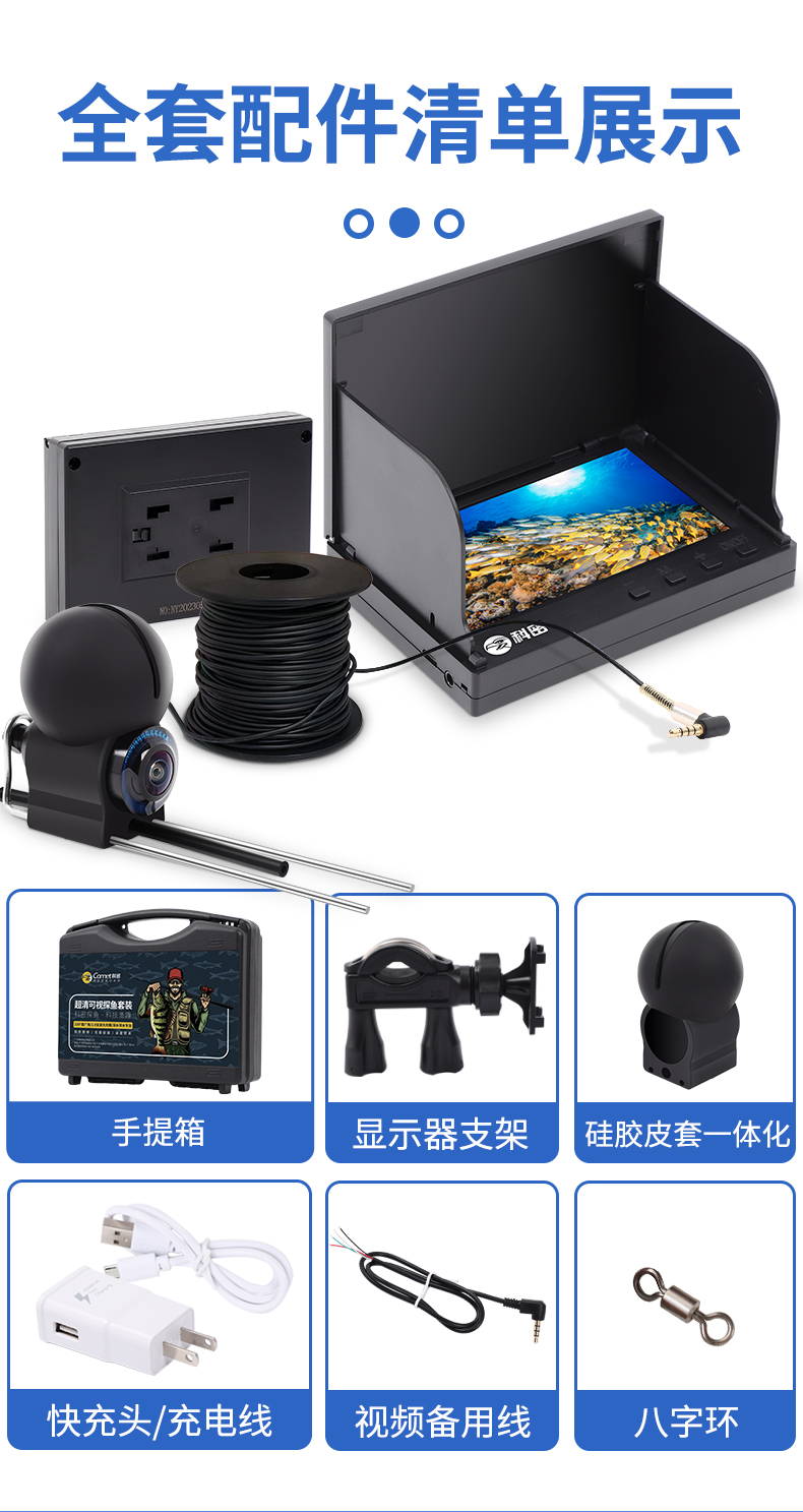 科密水下超清探魚器錨魚顯示屏夜視水底看魚攝像頭探魚VF43F