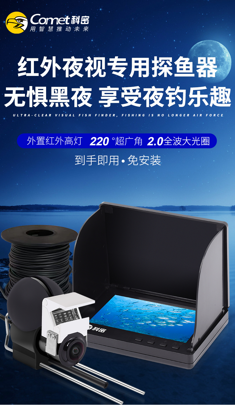 科密超清渾水透探魚器錨魚顯示屏夜視水底看魚攝像探魚VF53FP