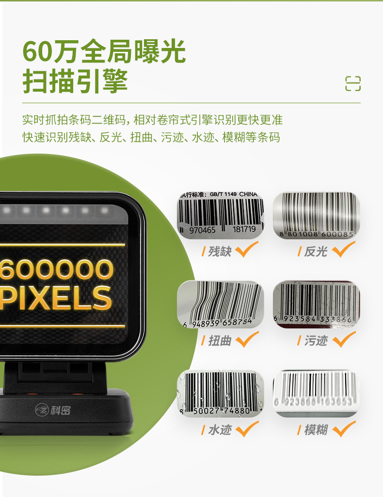 科密商用收款掃碼機(jī)一體機(jī)快速通用掃描槍一維二維碼支付收銀掃碼槍