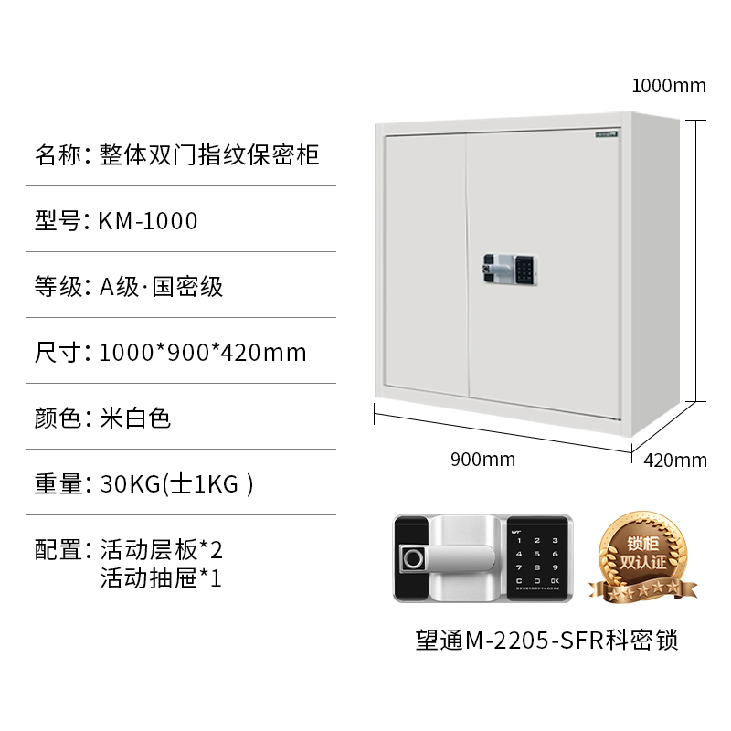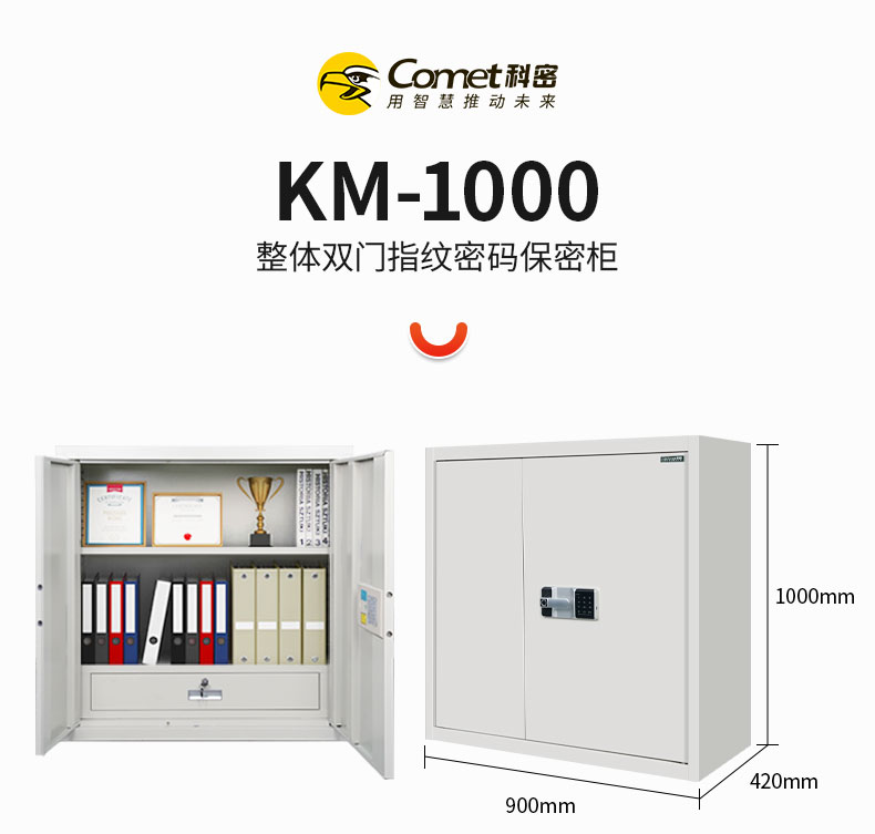 科密KM1000保密柜電子密碼鎖指紋鎖鋼制辦公密碼鎖柜檔案柜帶抽屜鐵皮柜小型 半截指紋保密柜