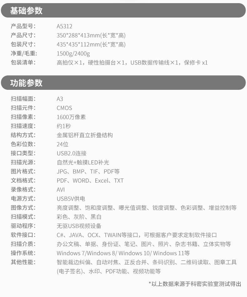 科密(comet) A5312 高拍儀 1600萬(wàn)像素掃描儀 A3A4文件資料照片存檔 OCR識(shí)別