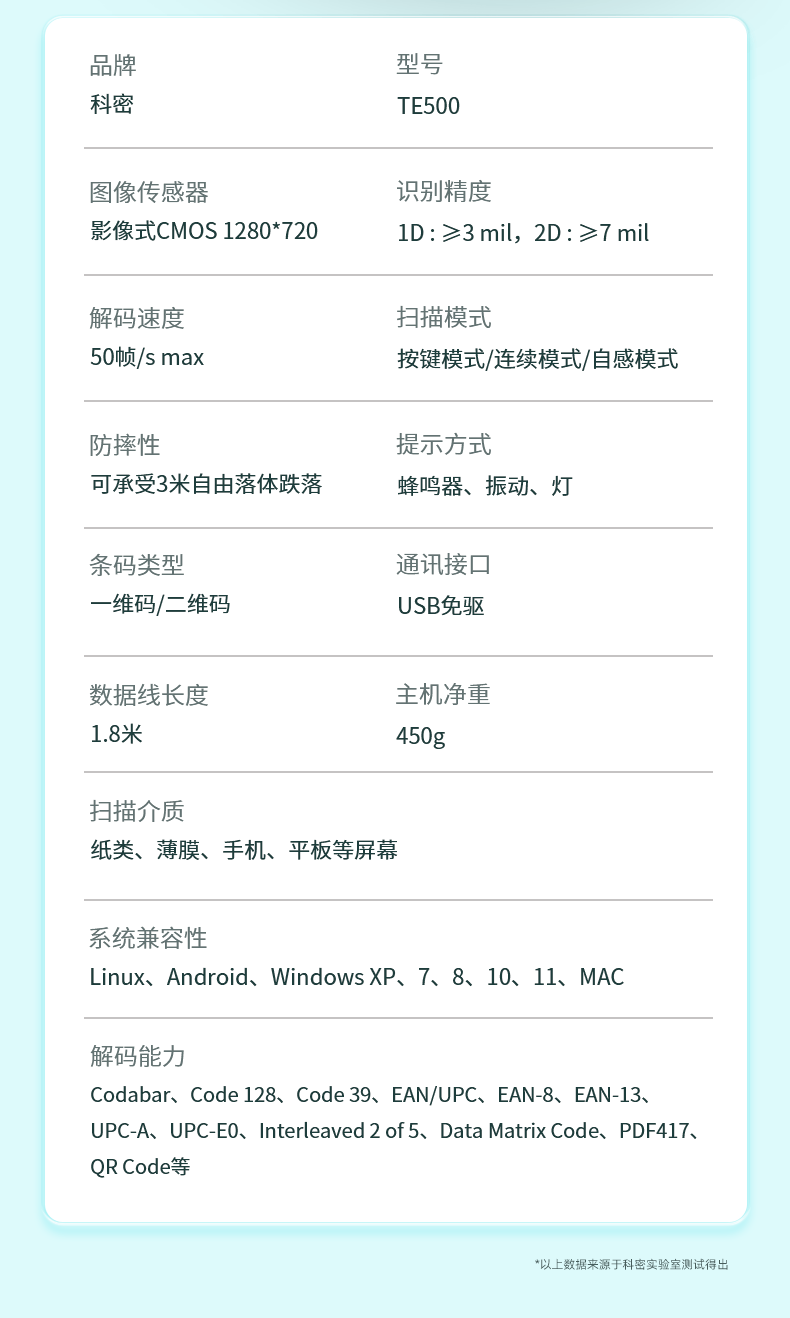 科密(comet)掃碼槍一二維碼掃描槍有線條碼 商品條碼倉儲物流超市支付掃碼器TE500 支持國產系統(tǒng)