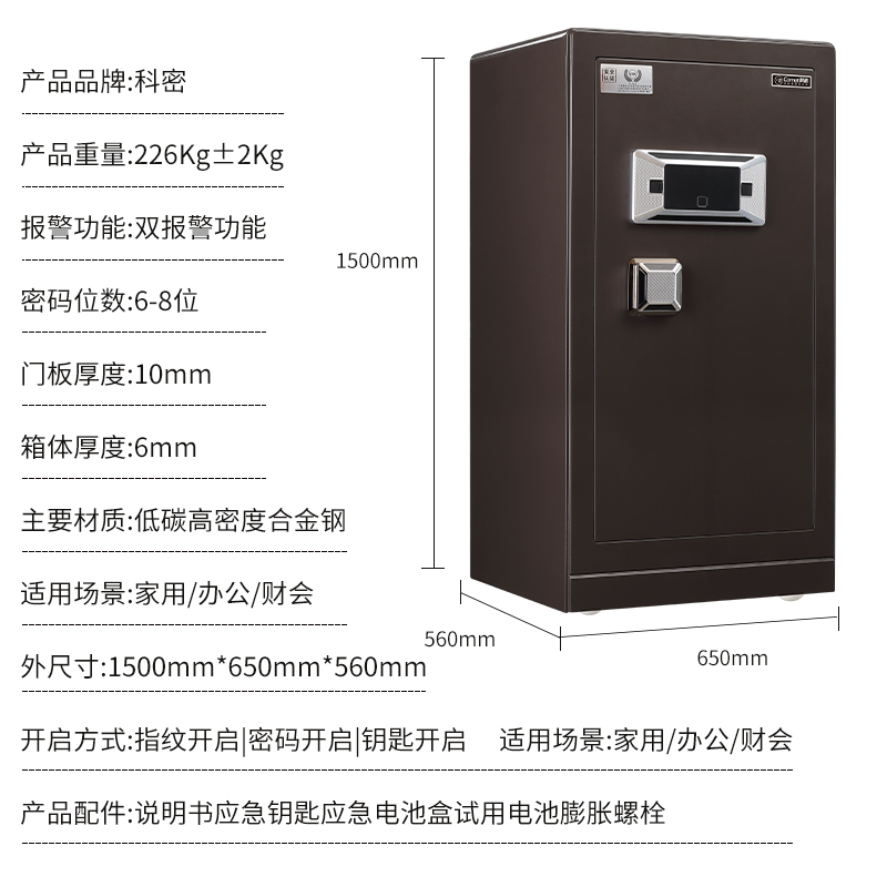 科密 FDG-150Zs全鋼辦公家用商用指紋密碼保險柜 輕奢灰 高150CM