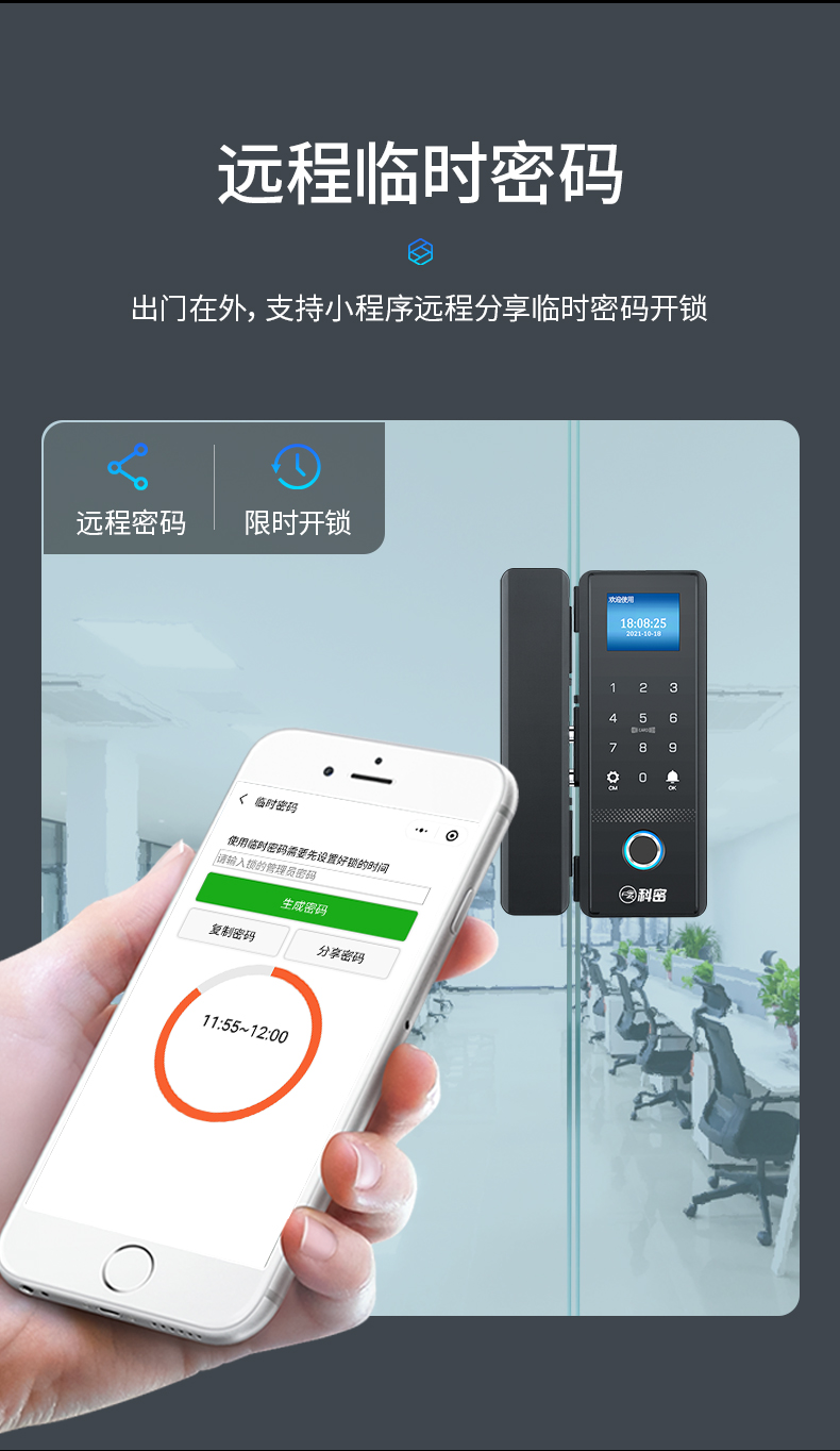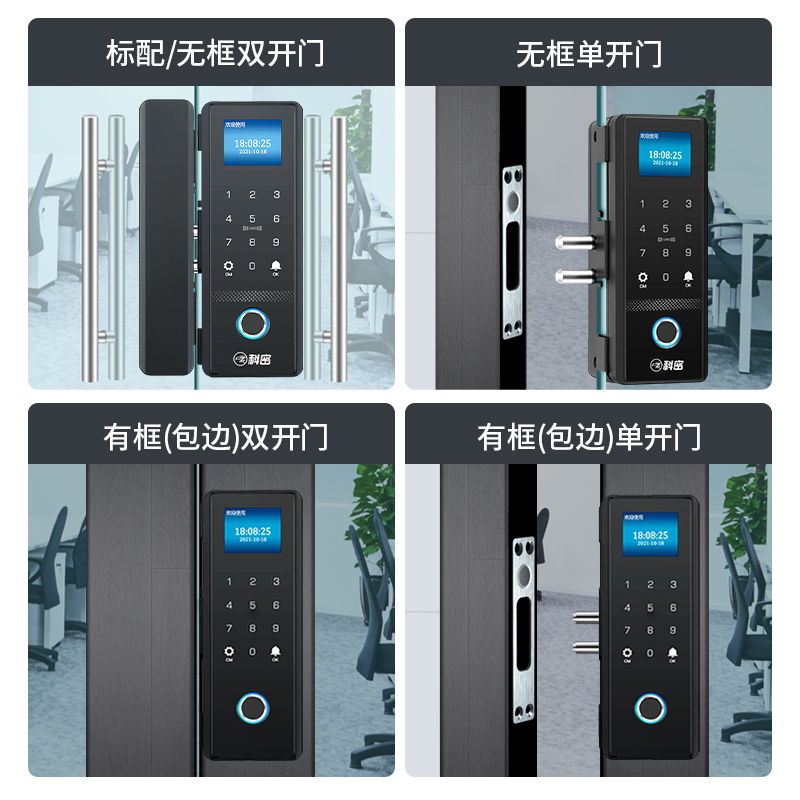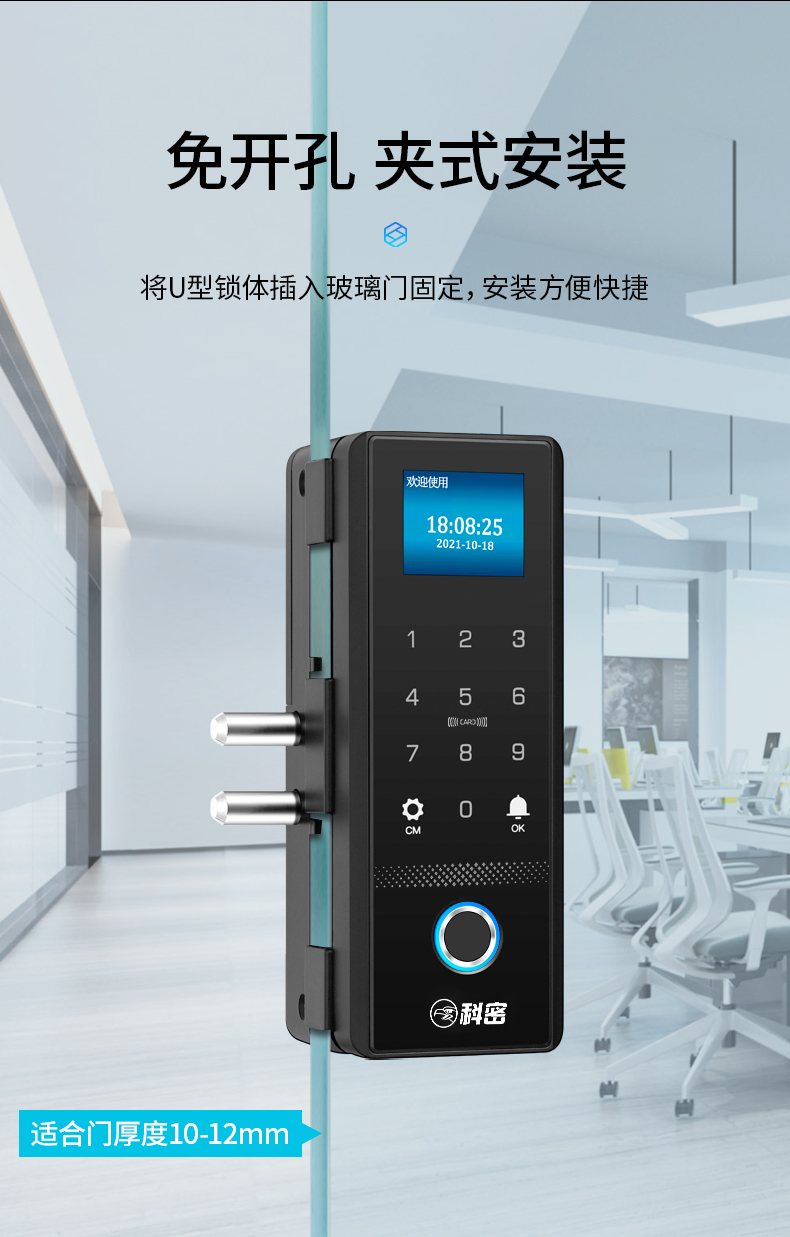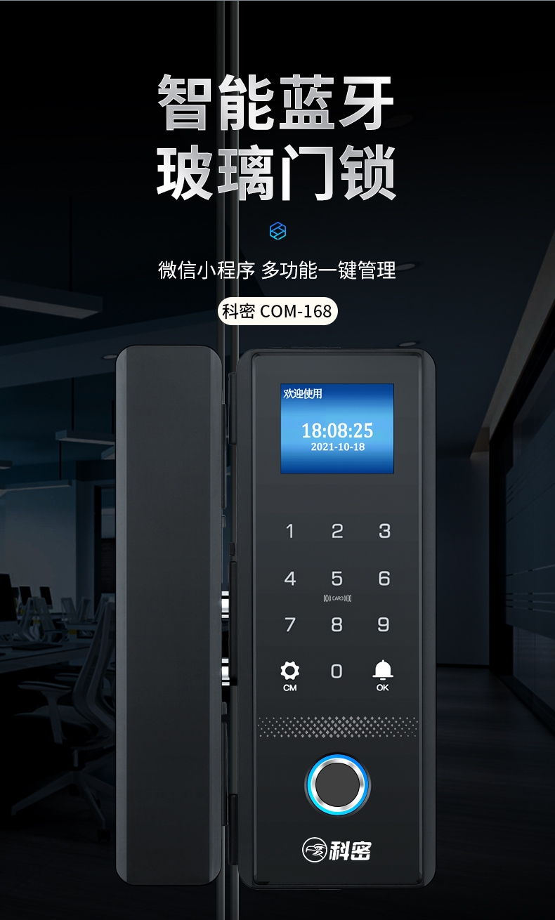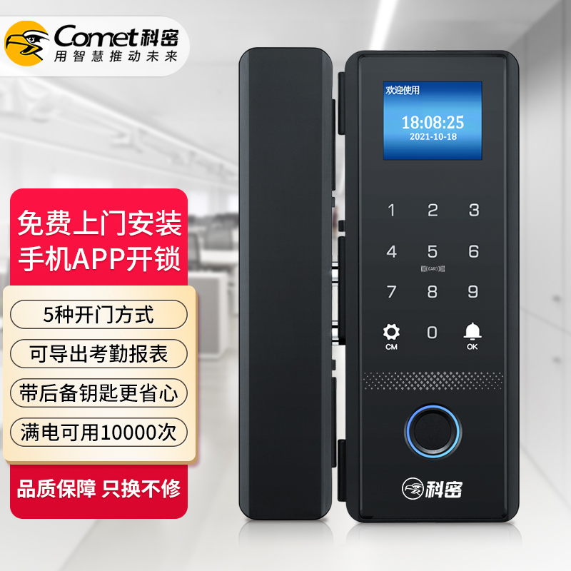 科密(comet)玻璃門指紋鎖智能電子密碼鎖辦公室玻璃門鎖免開孔布線藍(lán)牙小程序考勤應(yīng)急鑰匙COM-168A