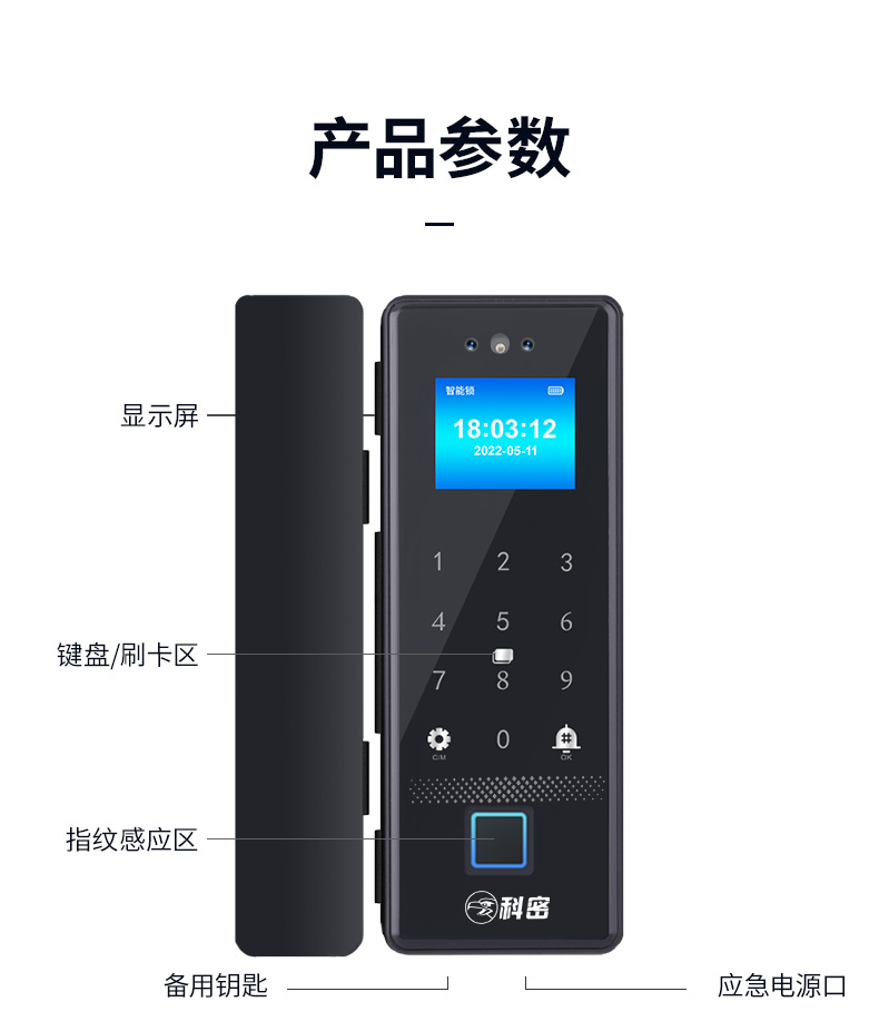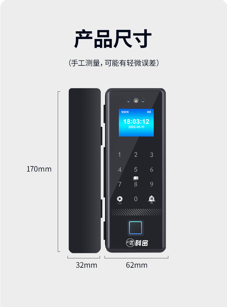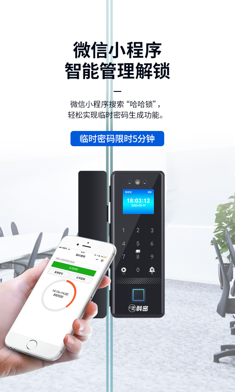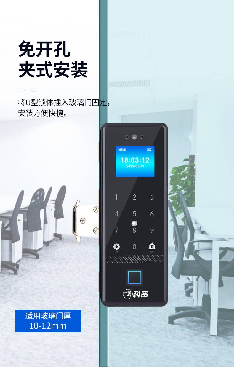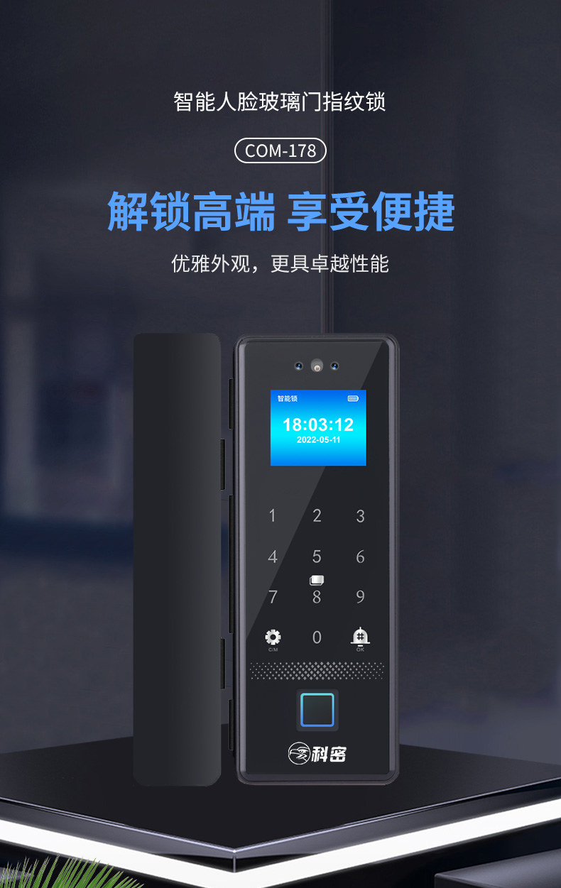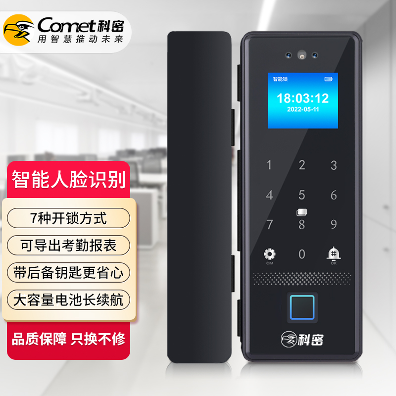 科密(comet)人臉識(shí)別玻璃門(mén)指紋鎖智能電子密碼鎖辦公室玻璃門(mén)鎖免開(kāi)孔小程序開(kāi)鎖應(yīng)急鑰匙COM-178A