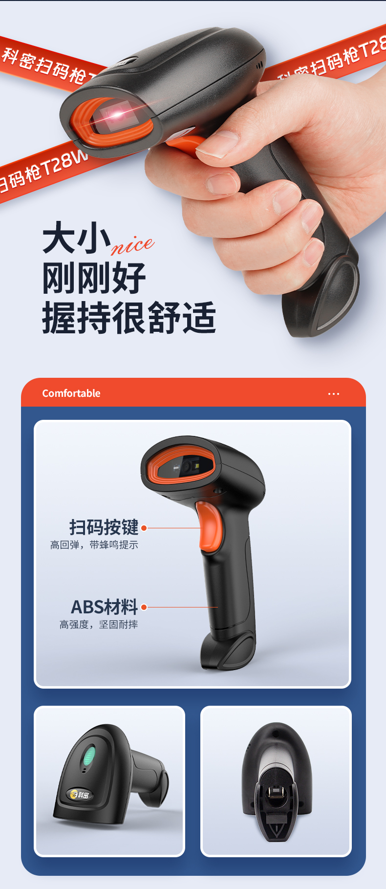 科密T28W無線掃碼槍條碼掃描器超市手機支付寶微信收銀二維碼掃描槍快遞物流倉儲把槍有線醫(yī)保電子憑證掃碼器