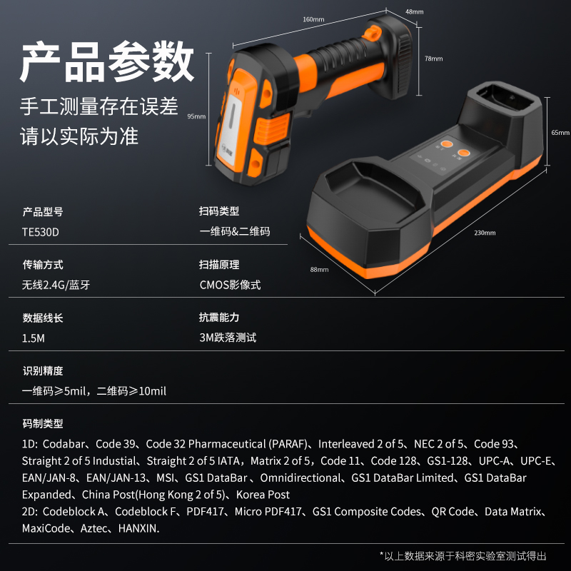 科密(comet)無線掃碼槍條形碼 一二維碼工業(yè)掃描槍 超市倉儲物流條碼掃描器TE530D 支持國產(chǎn)系統(tǒng)