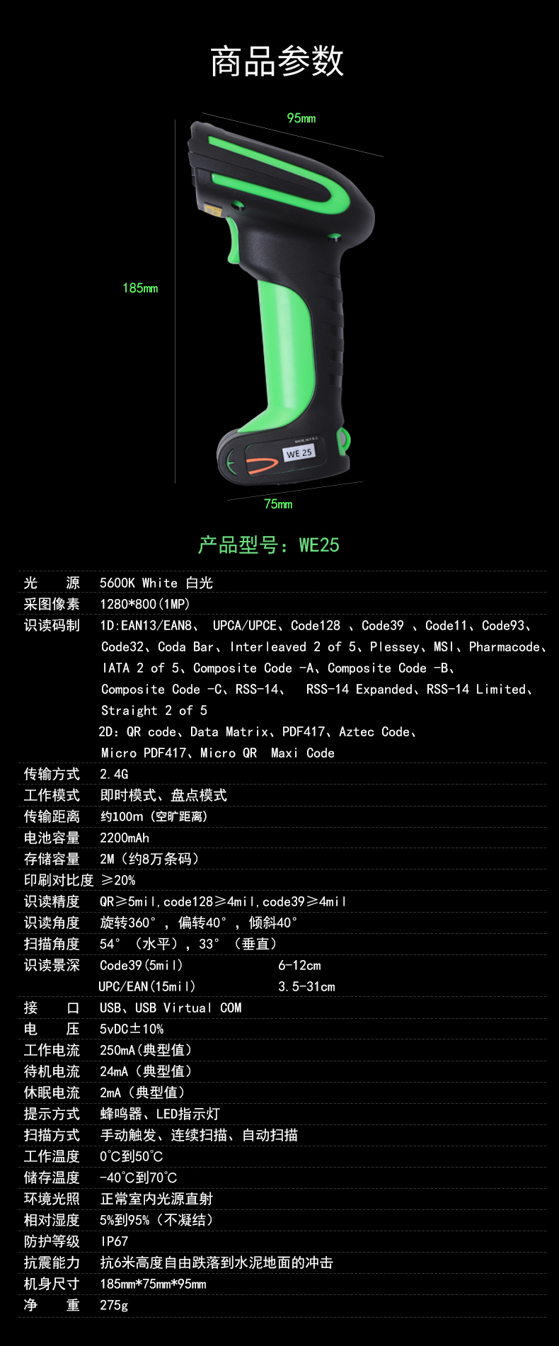 科密(comet)WE25 無(wú)線一二維碼掃描槍條碼槍掃碼槍 工業(yè)級(jí)防水防塵防油污 金屬DPM碼 支持國(guó)產(chǎn)系統(tǒng)