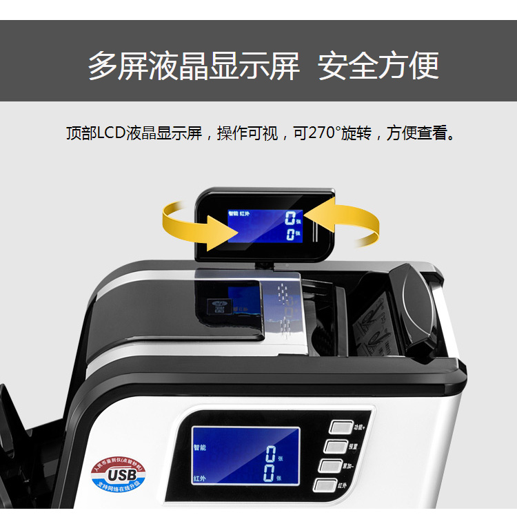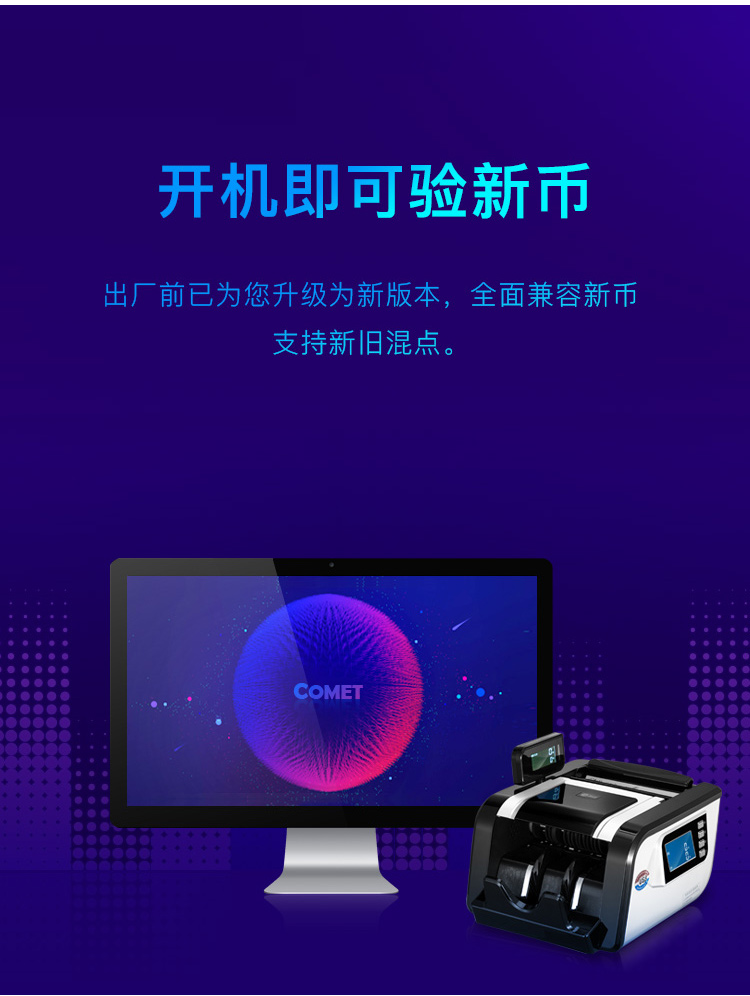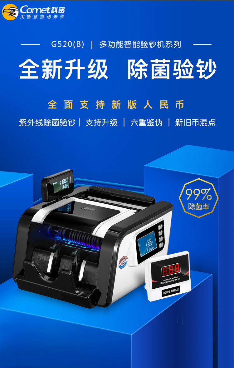 科密(comet)新版人民幣驗鈔點鈔機 銀行家用商用專用國標B類點鈔數(shù)錢機 三屏智能語音可新舊混點G520