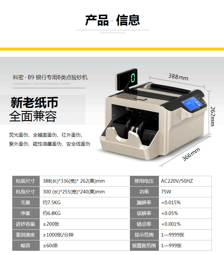 科密(comet)新版人民幣驗(yàn)鈔點(diǎn)鈔機(jī) 國(guó)標(biāo)B類點(diǎn)鈔機(jī) 銀行可用商用 新舊幣混點(diǎn)雙屏語(yǔ)音 B9