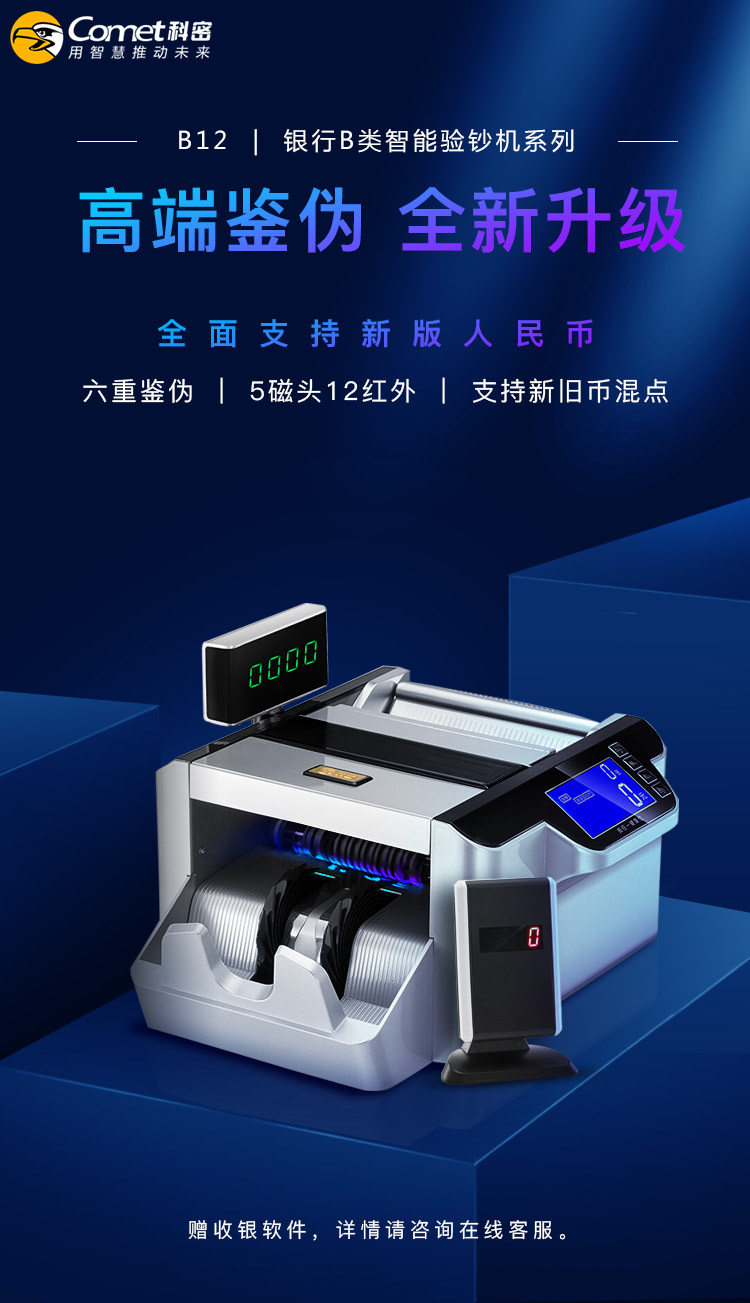 科密(comet)新版人民幣點鈔機(jī) 國標(biāo)B類驗鈔點鈔機(jī) 銀行可用商用 新舊幣混點三屏顯示語音報警 B12
