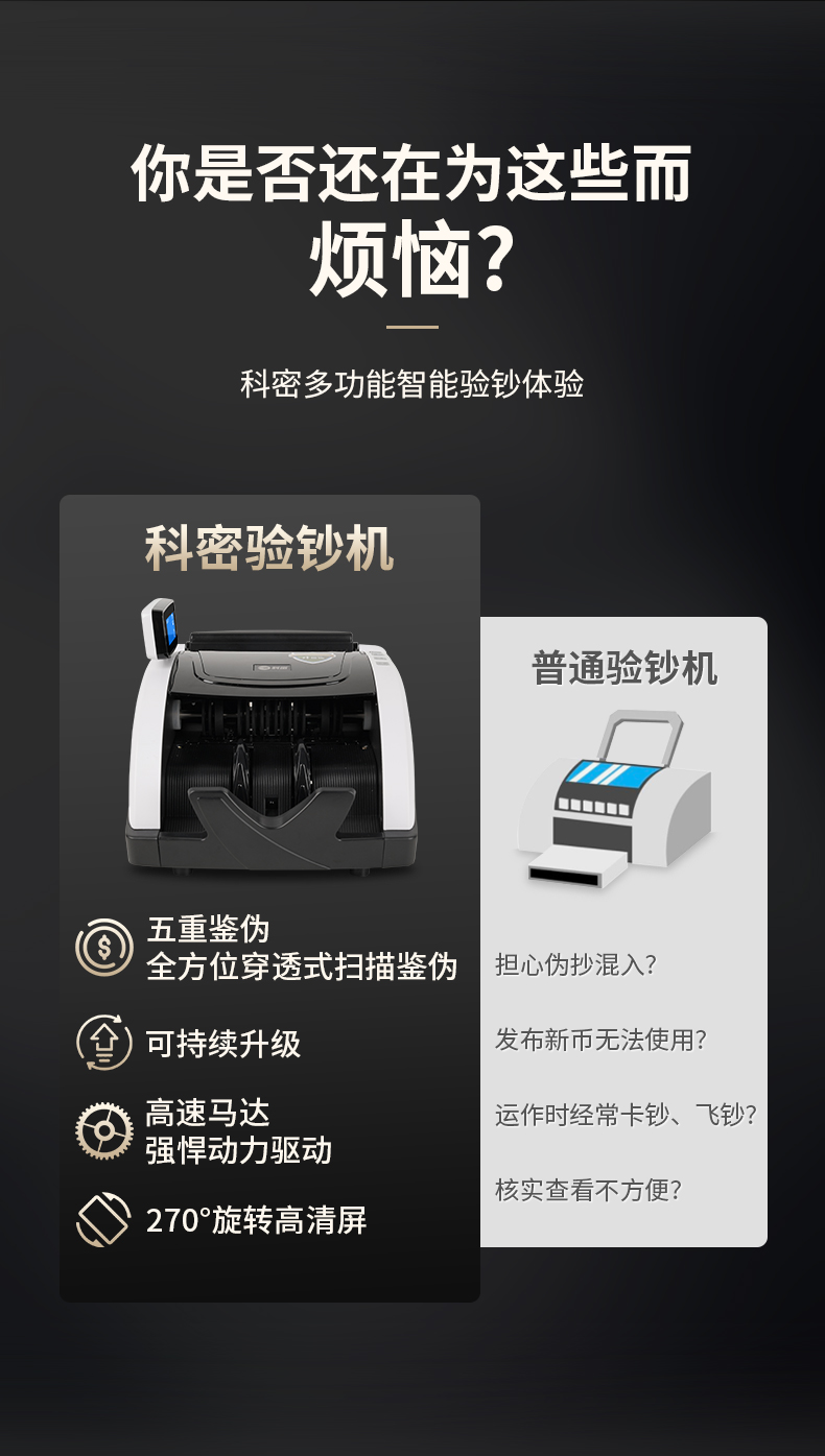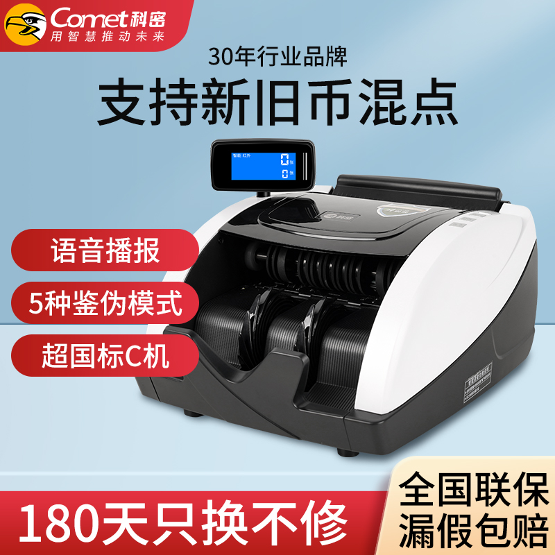 科密(comet)驗鈔點鈔機支持新版人民幣 小型家用商用收銀支付 新舊混點語音便攜雙屏C級數(shù)鈔機