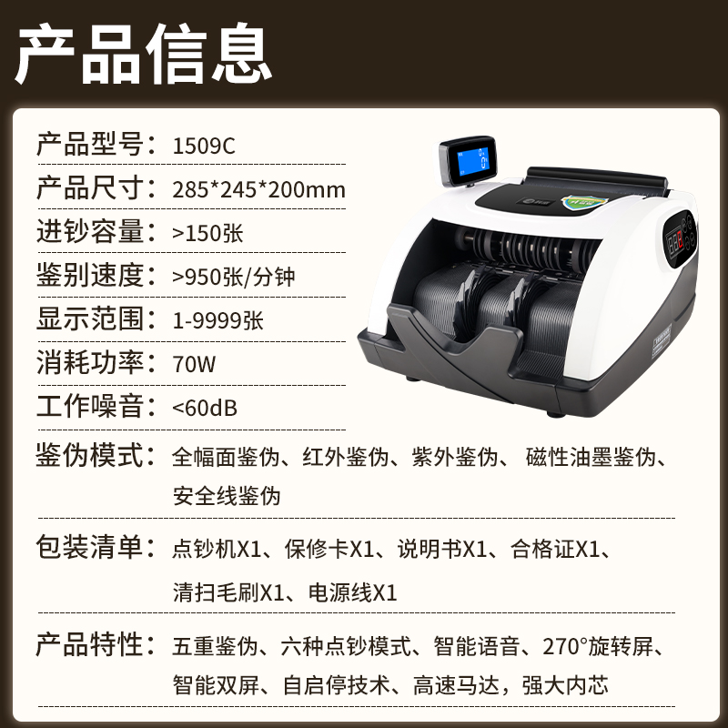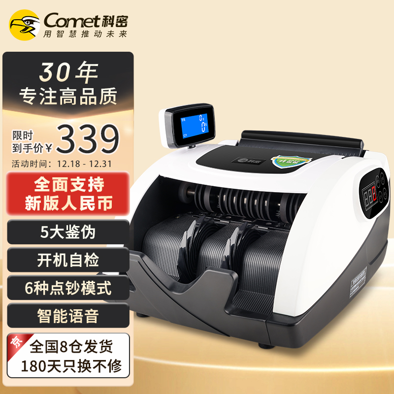 科密(comet)新版人民幣驗鈔點鈔機 雙屏國標C級智能語音 收銀支付小型家用商用驗點鈔機數(shù)錢機1509C