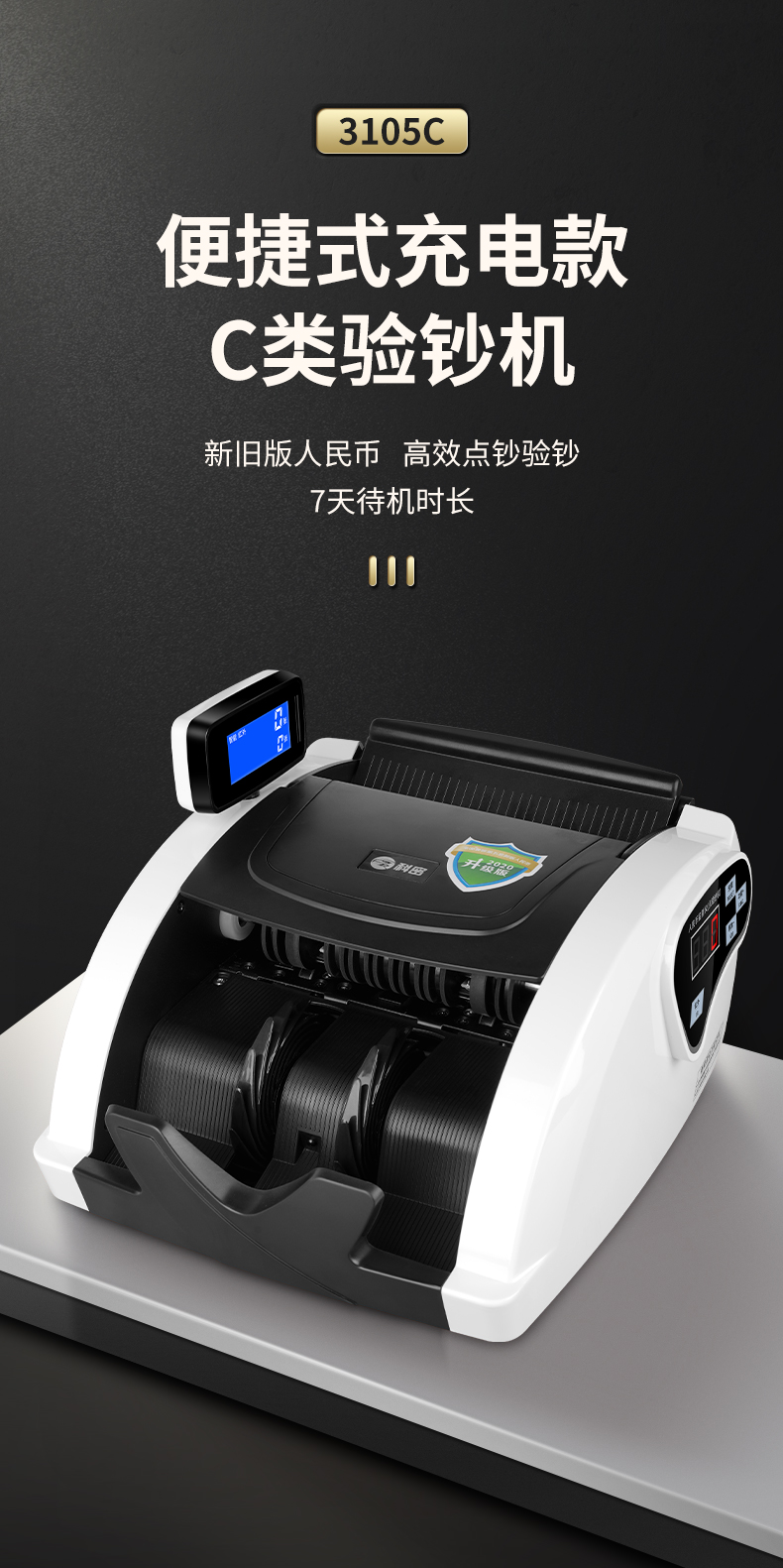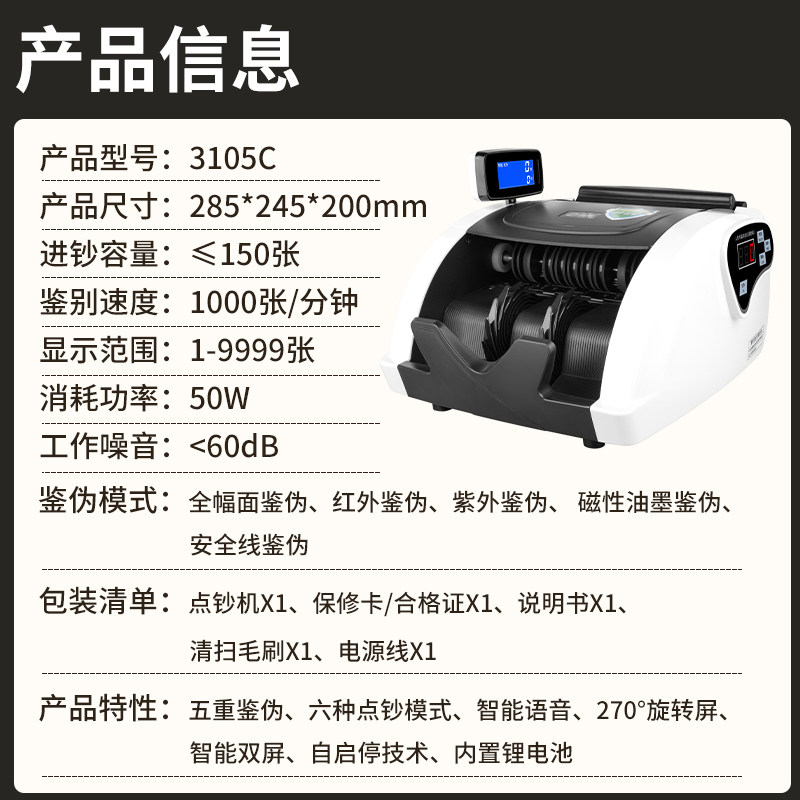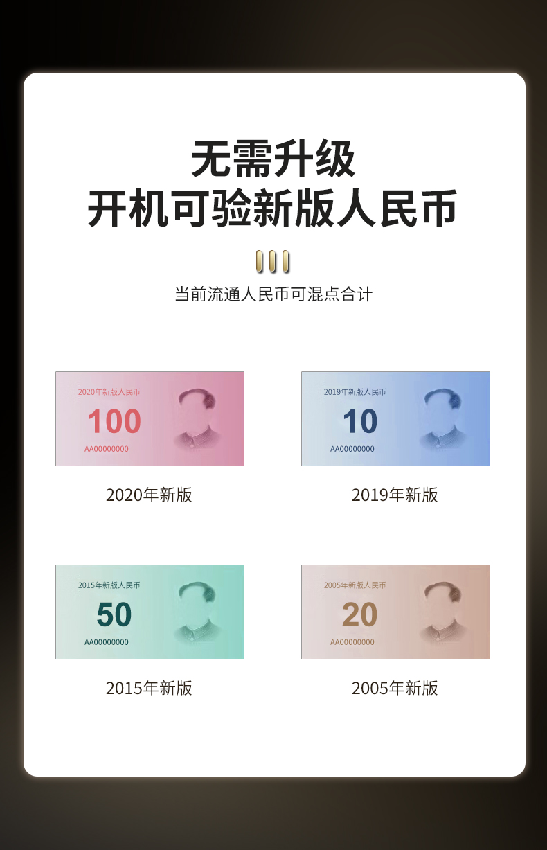 科密(comet) 驗鈔點鈔機支持新版人民幣 可充電便攜收銀家用商用 智能語音小型驗鈔數(shù)鈔機3105C