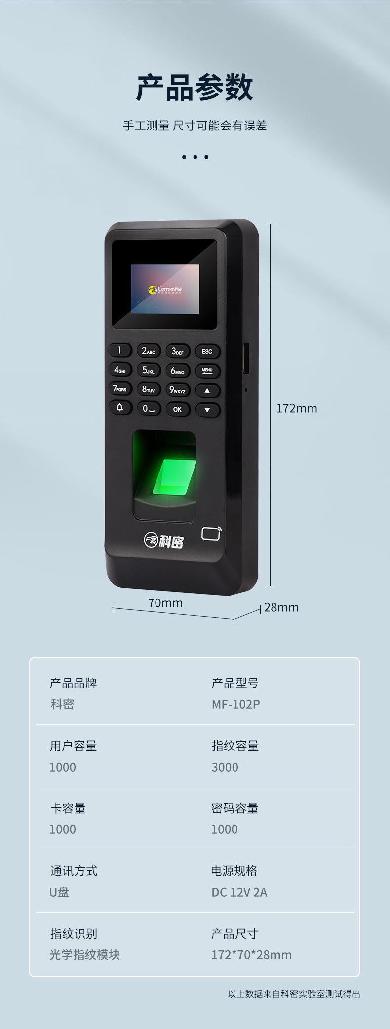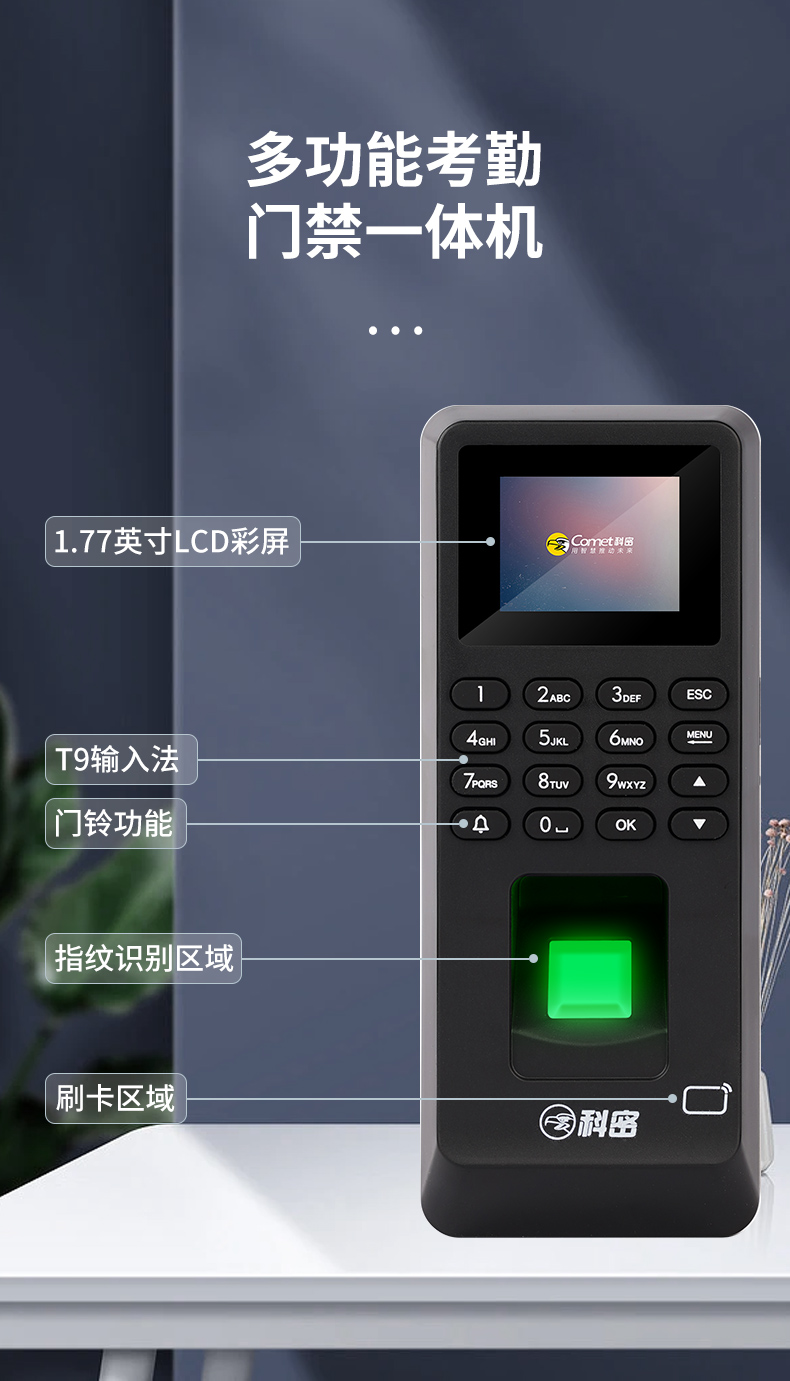 科密(comet) MF-102P 指紋識(shí)別考勤門禁一體機(jī) 指紋考勤機(jī)打卡機(jī) 指紋密碼刷卡一卡通門禁系統(tǒng)
