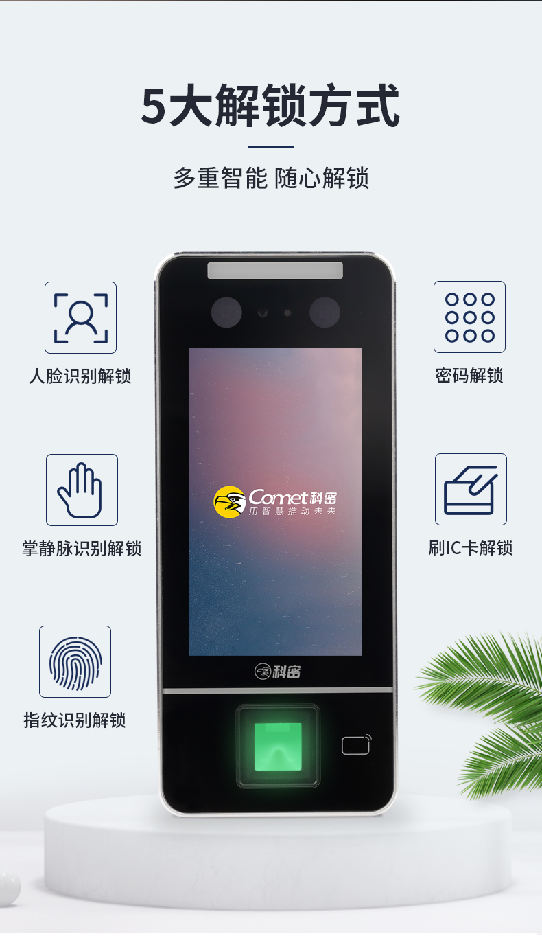 科密 人臉指紋識(shí)別考勤機(jī)打卡機(jī) 門禁一體機(jī) 人臉掌靜脈指紋密碼刷卡一卡通門禁一體機(jī) MF-910C