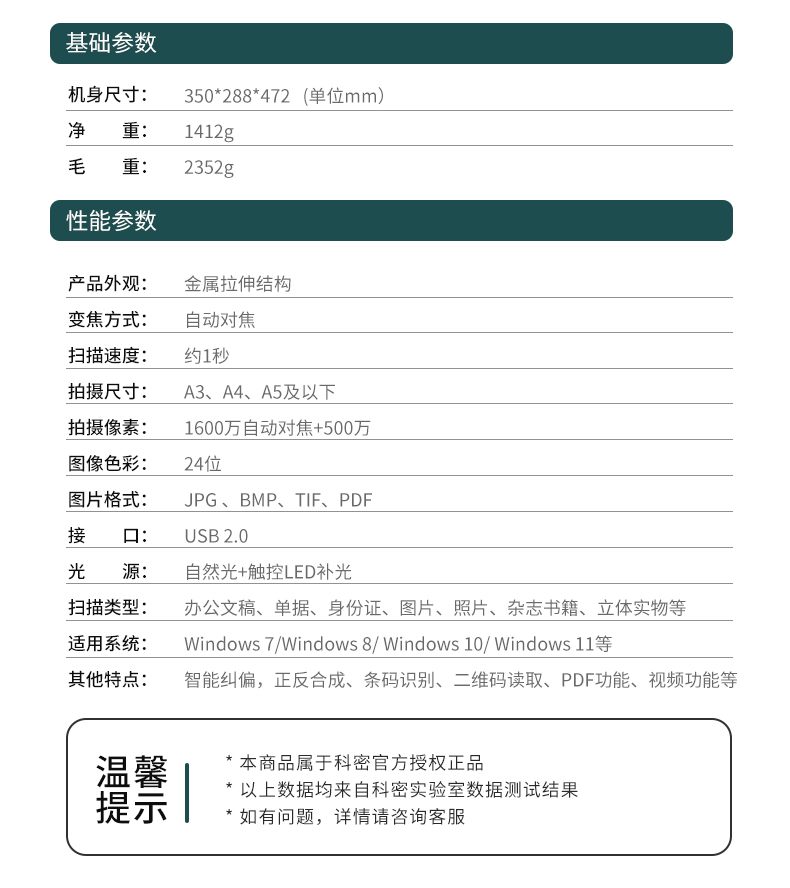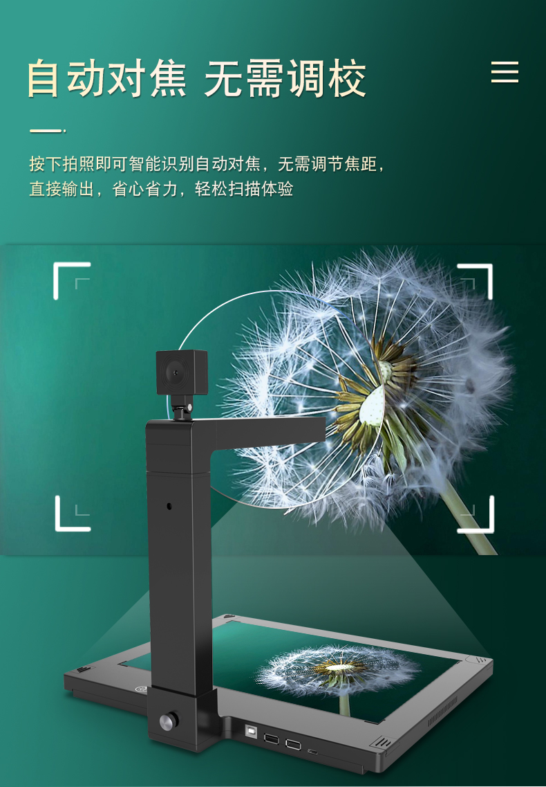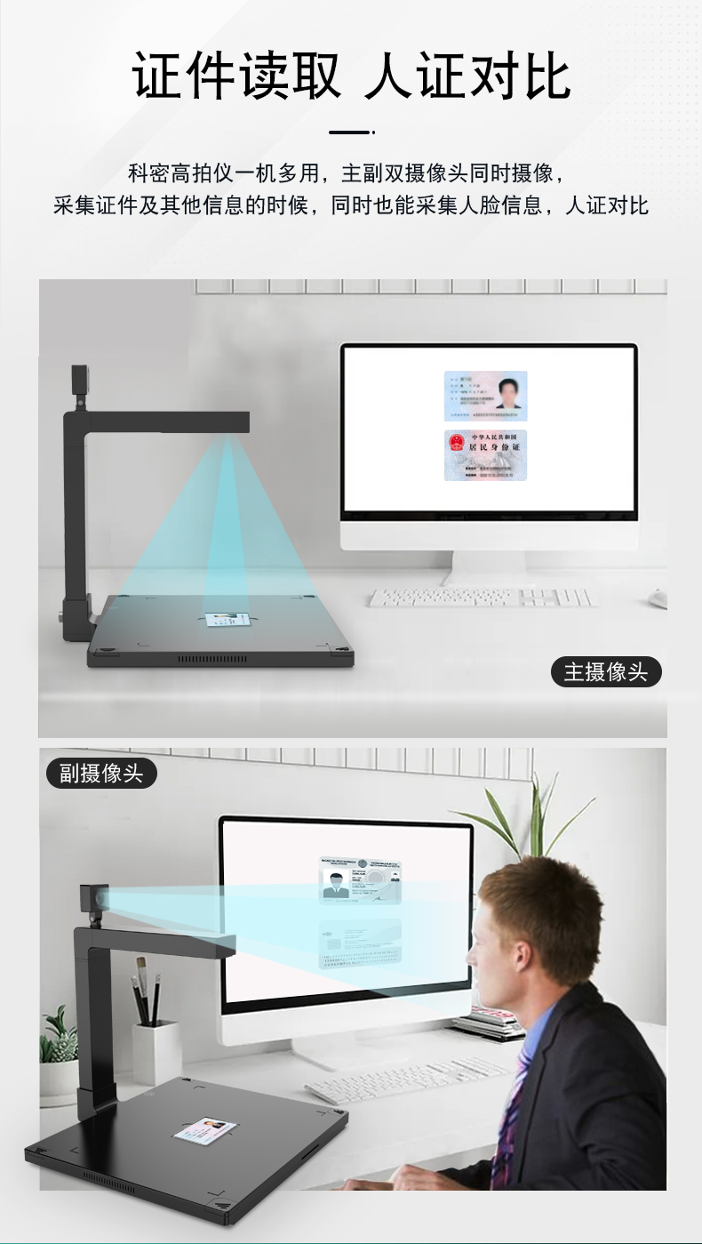 科密 D4313 高拍儀 1600萬(wàn)+500萬(wàn)高清像素 A3A4文件資料合同OCR掃描儀
