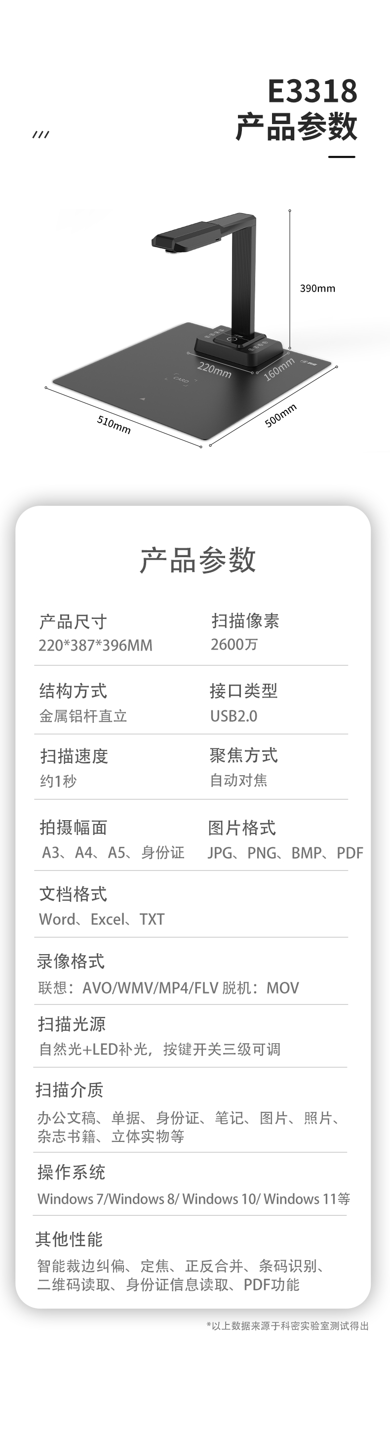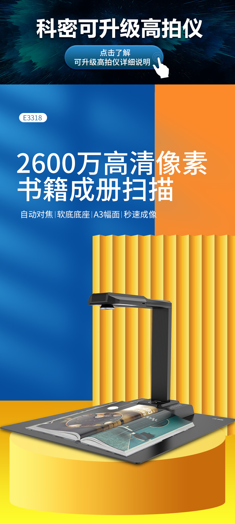 科密(comet) E3318 高拍儀2600萬(wàn)像素掃描儀 A3A4幅面 曲面展平OCR圖文識(shí)別