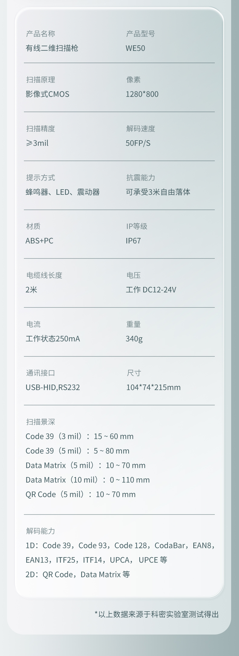 WE50有線二維掃描槍