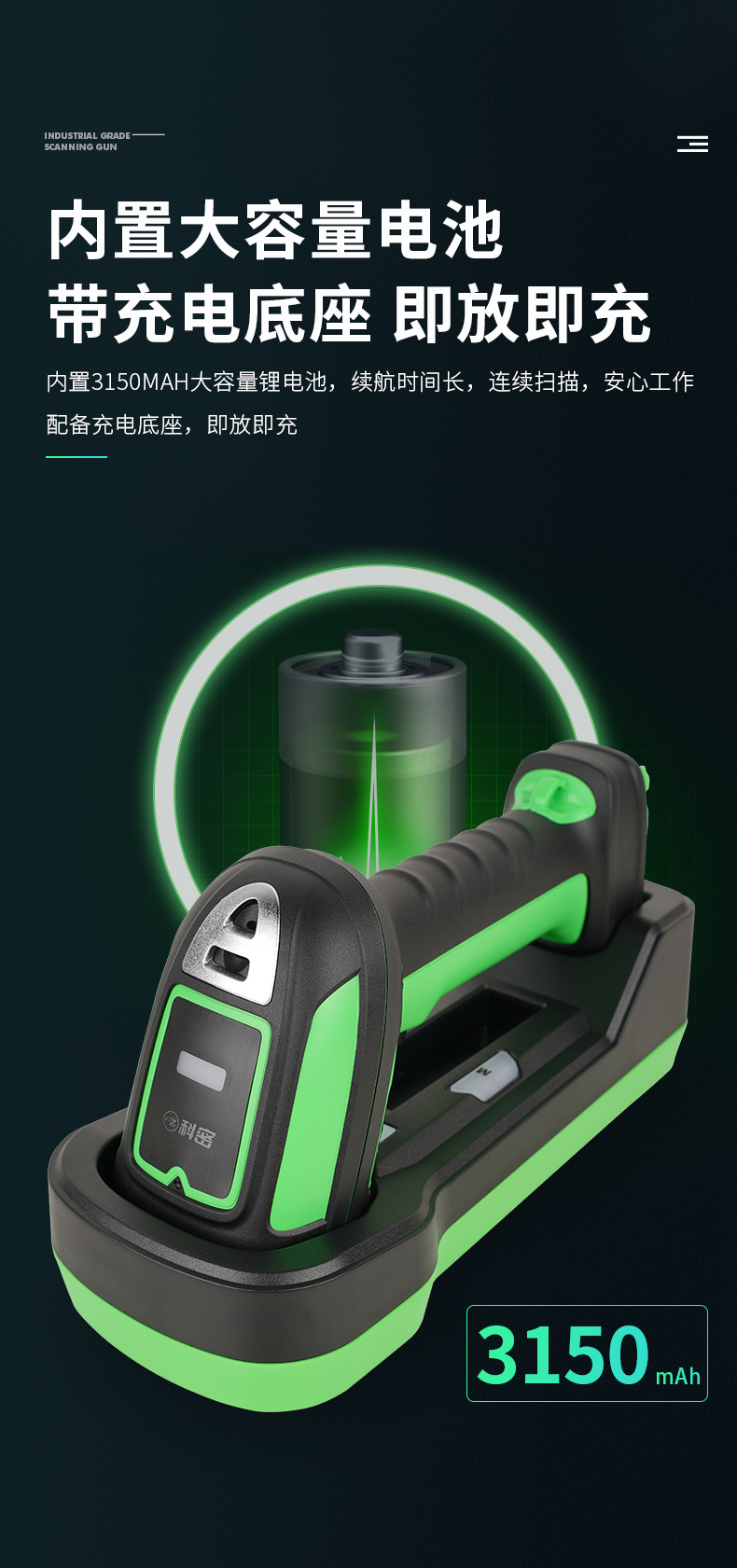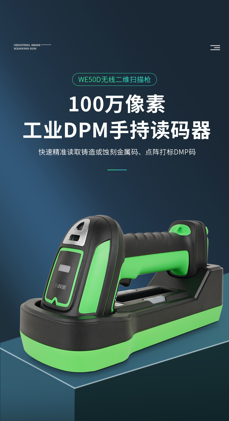 科密WE50D掃描槍無(wú)線藍(lán)牙條碼槍 一二維工業(yè)級(jí)帶座掃碼槍 生產(chǎn)制造高精度金屬雕刻DPM碼