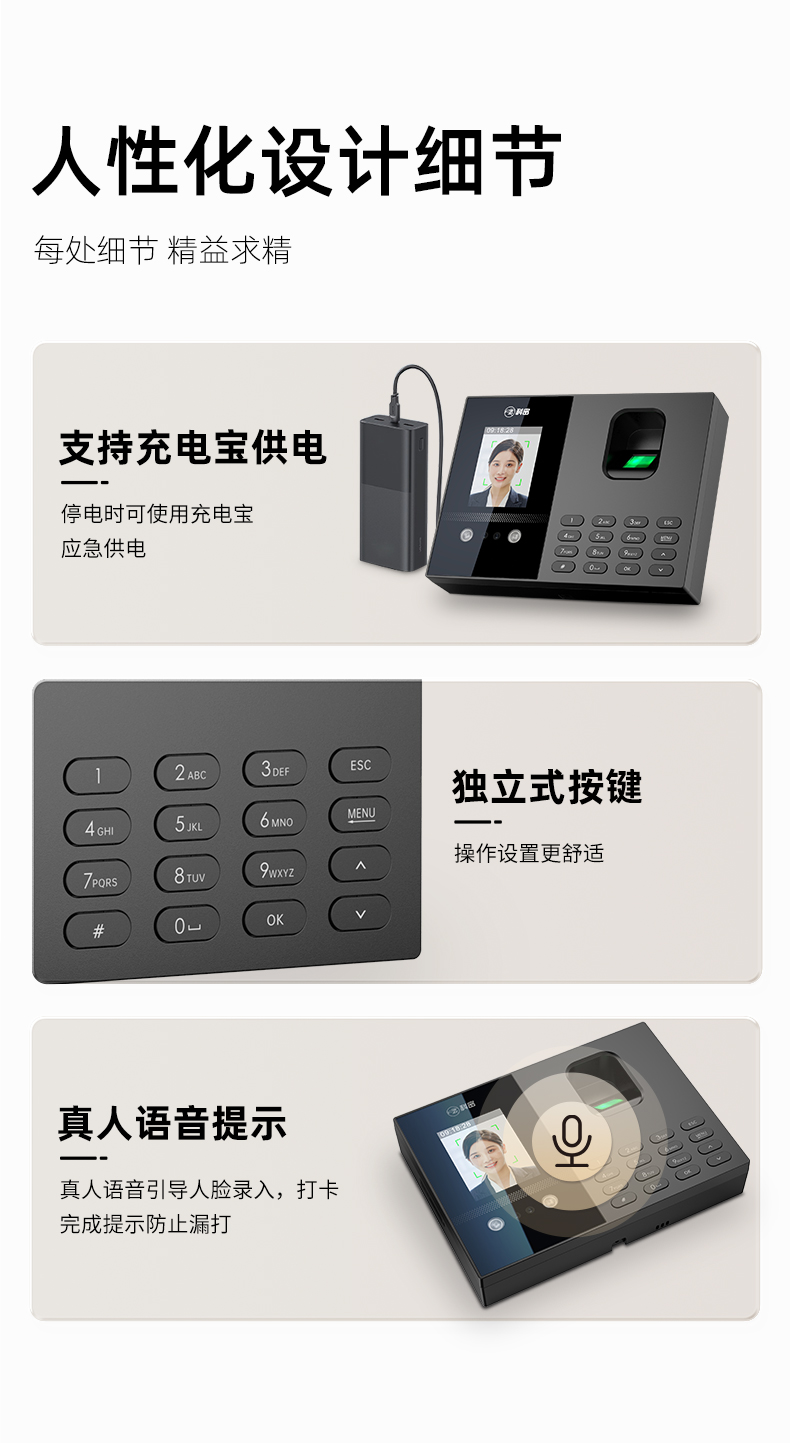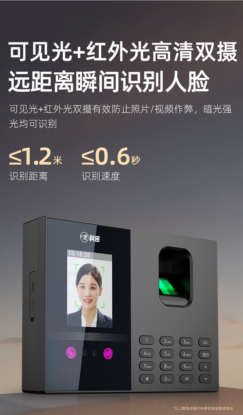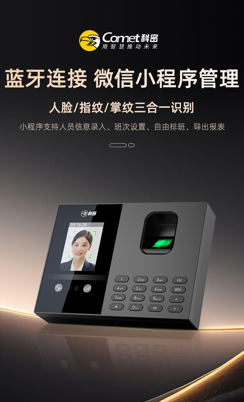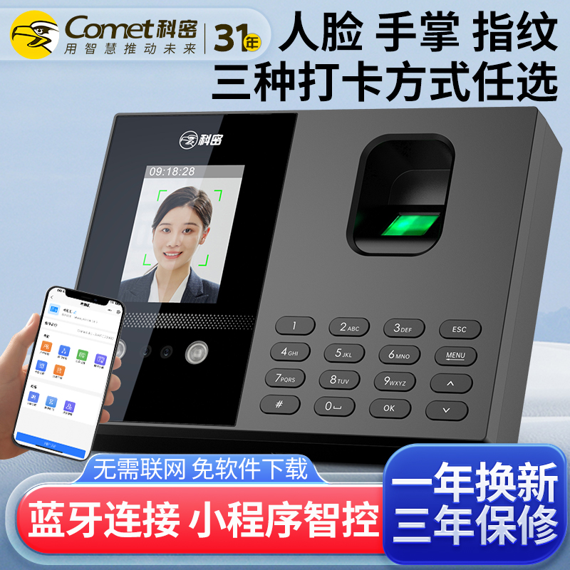 科密(comet)考勤機(jī) 打卡機(jī)人臉+指紋+掌紋識(shí)別考勤機(jī) 藍(lán)牙連接 小程序管理 自動(dòng)生成報(bào)表FC02W