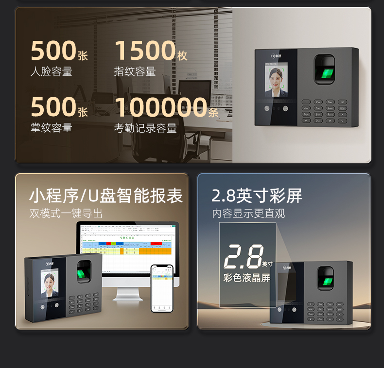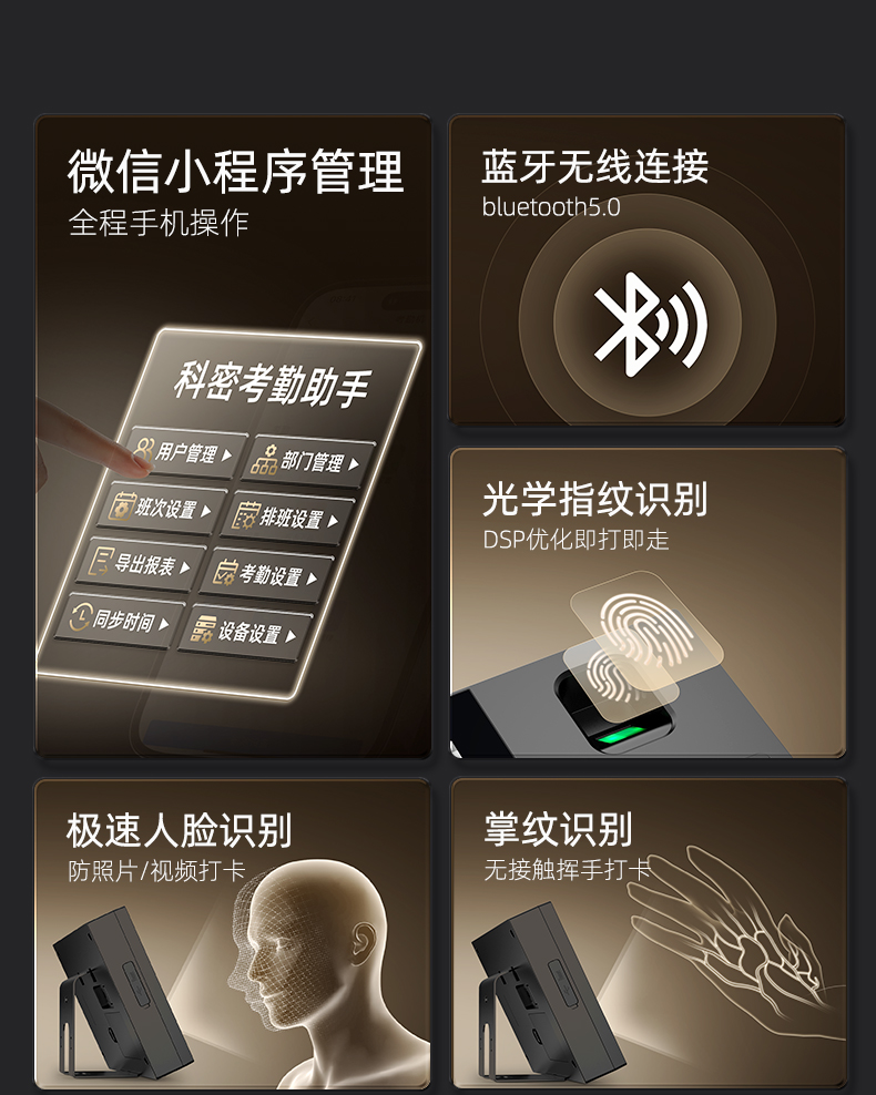 FC02W人臉+指紋+掌紋識(shí)別考勤機(jī)(藍(lán)牙小程序版)