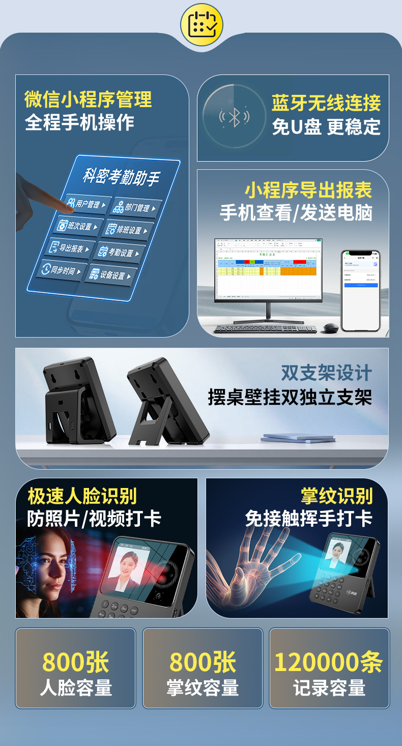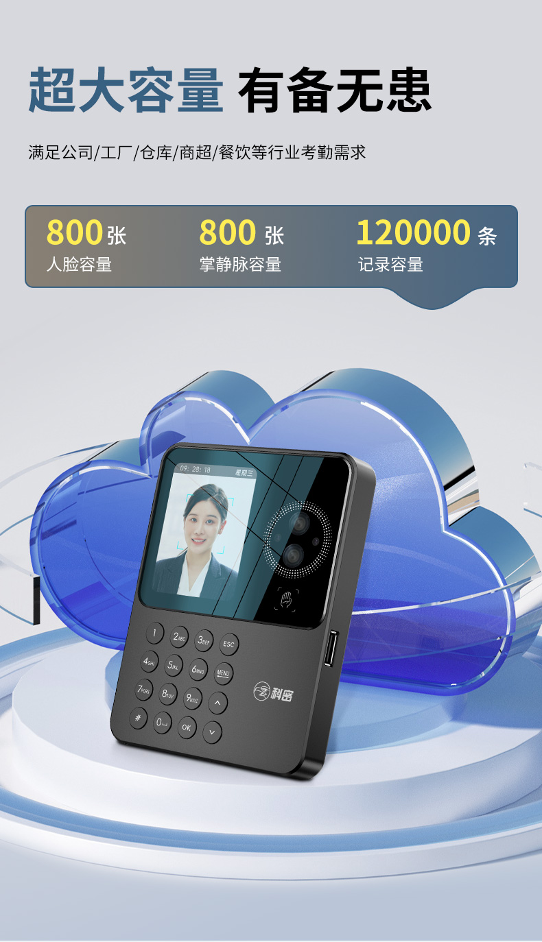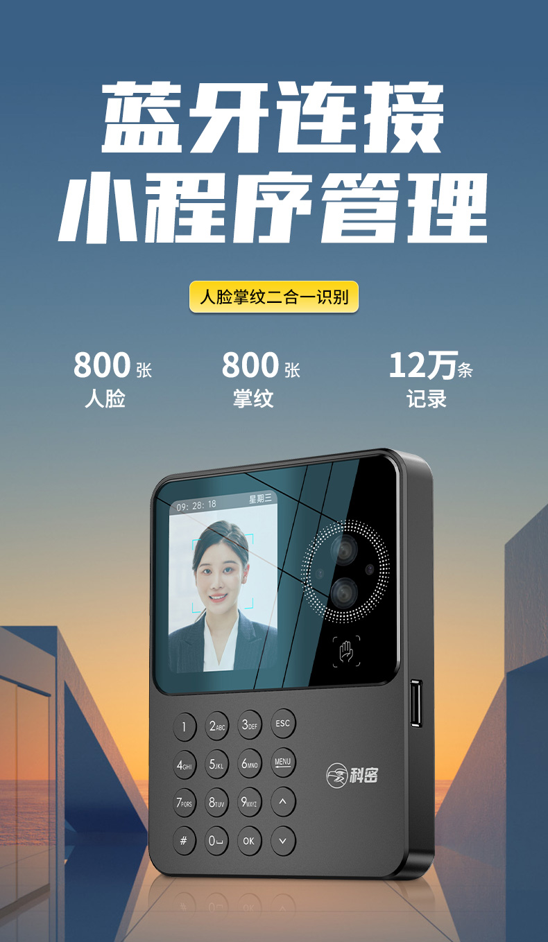 科密(comet)考勤機(jī) 打卡機(jī)人臉+掌紋識(shí)別考勤機(jī) 藍(lán)牙連接 小程序管理 自動(dòng)生成報(bào)表PV20W