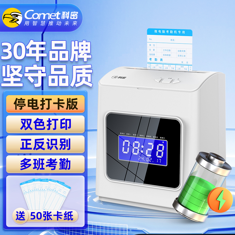 科密(comet)打卡機考勤機卡鐘紙質考勤鐘音樂報時快速打卡微電腦自動吸退移位 可停電打卡款 ET-3318D