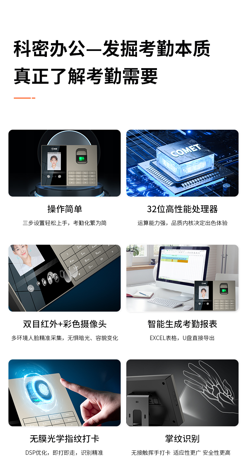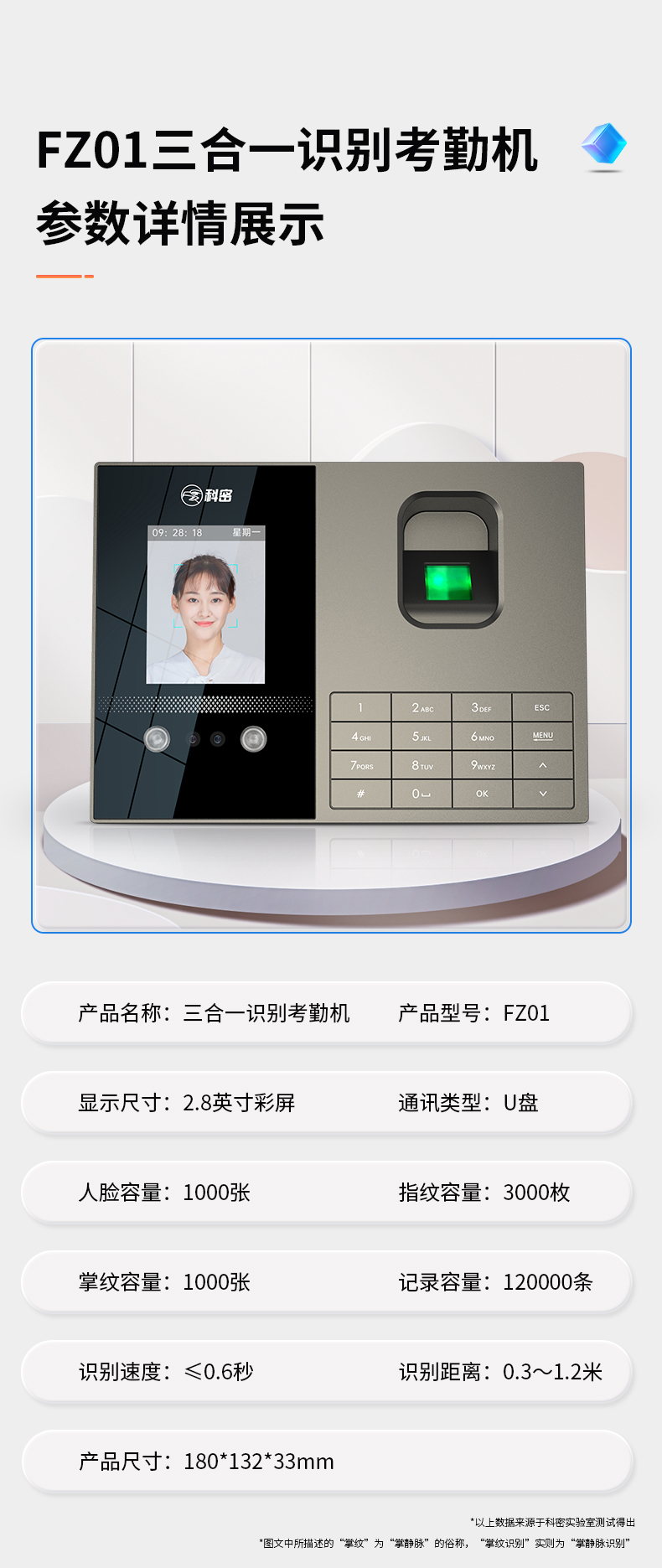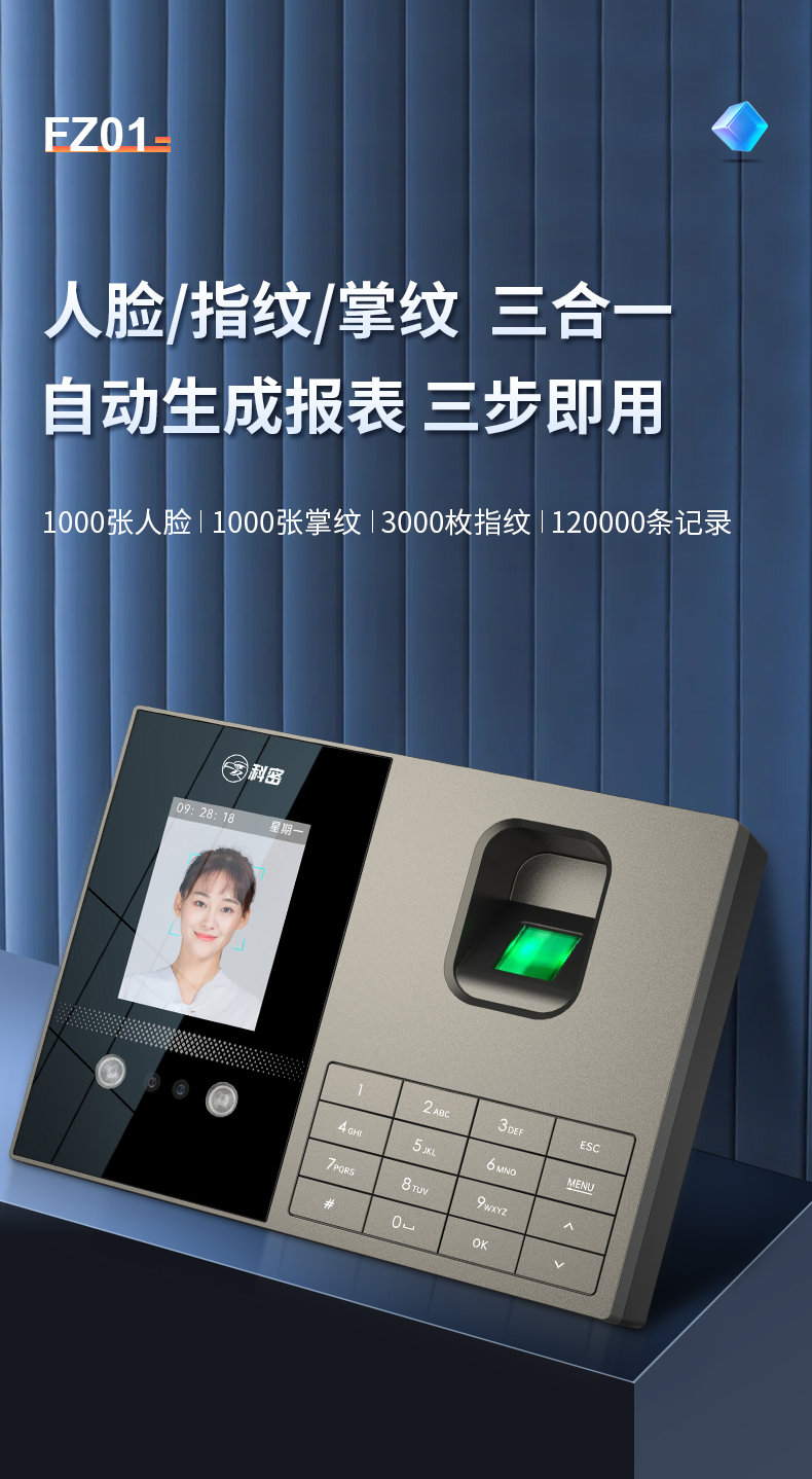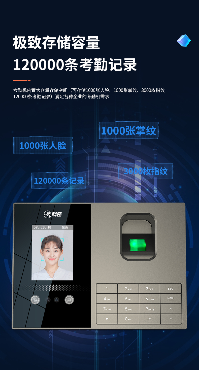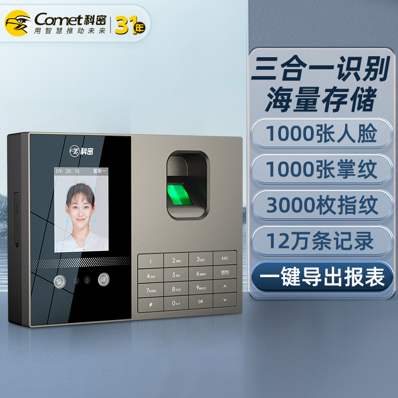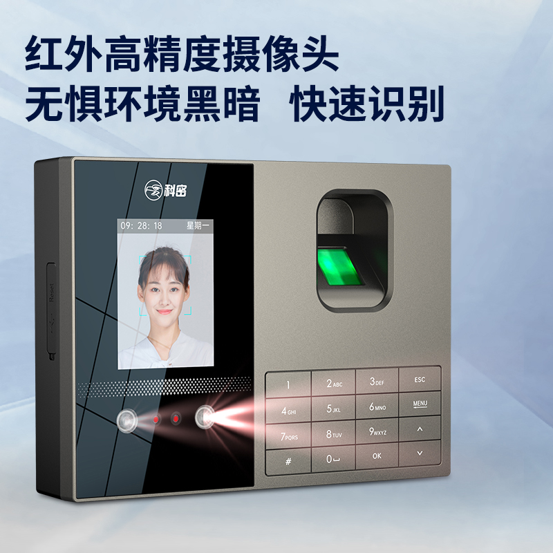 科密考勤機 打卡機人臉+指紋 掌靜脈識別 免網絡免軟件 大容量設置簡單 自動生成報表考勤機FZ01