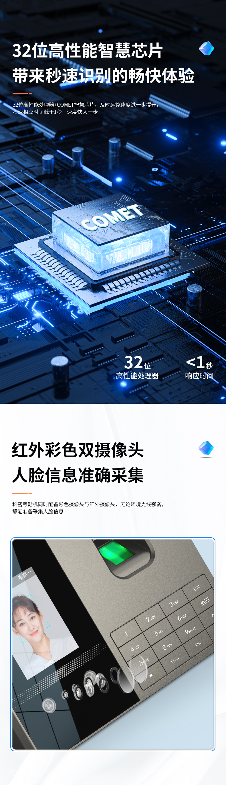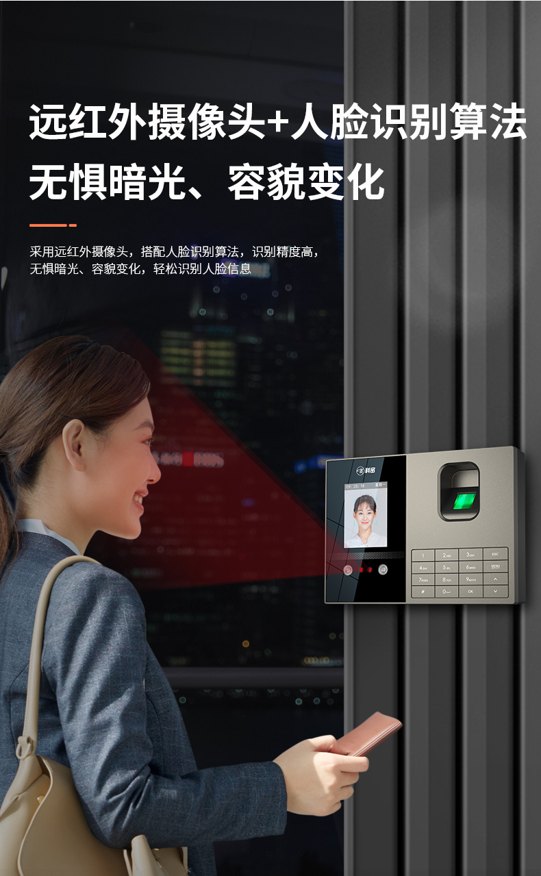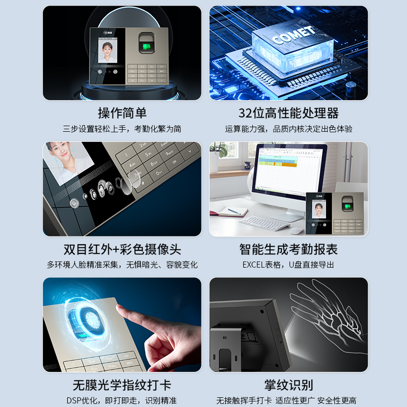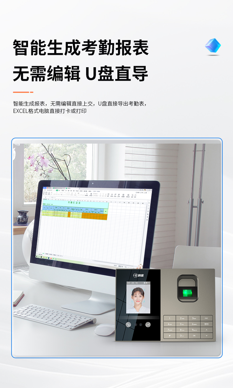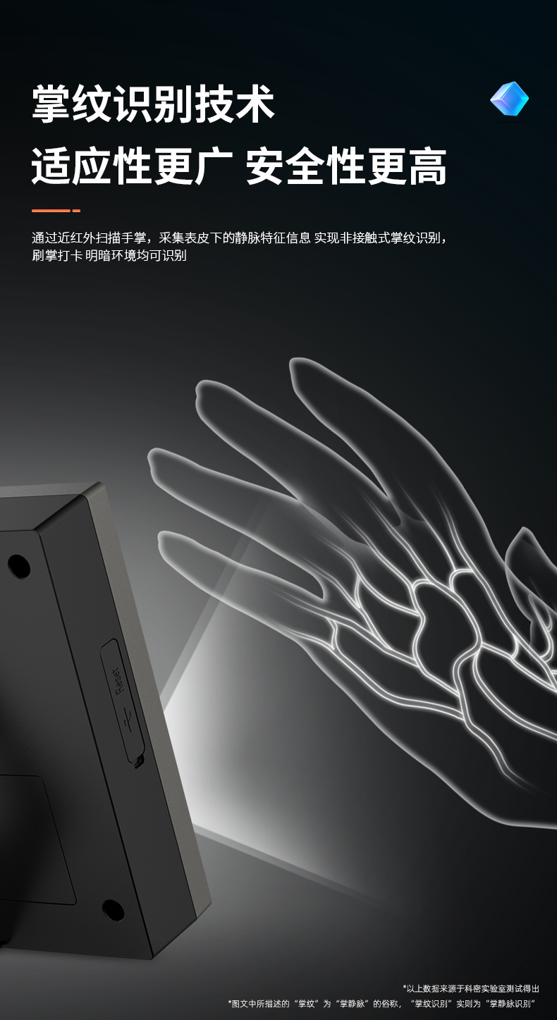 科密考勤機 打卡機人臉+指紋 掌靜脈識別 免網絡免軟件 大容量設置簡單 自動生成報表考勤機FZ01