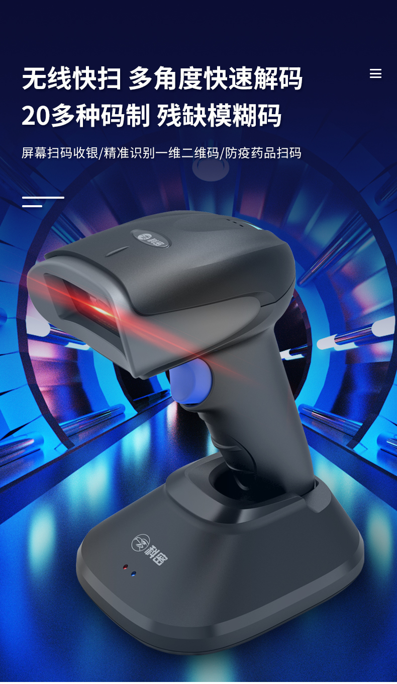 科密EP-8800D掃描槍無線一二維掃碼槍影像式條碼槍 物流快遞倉儲商超收銀醫(yī)保碼掃碼器 配充電座