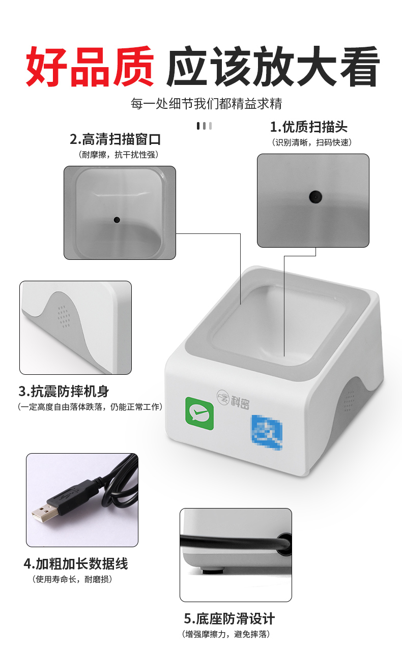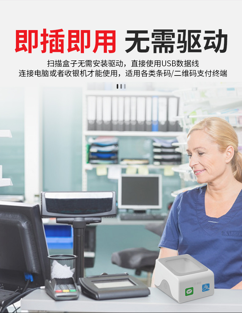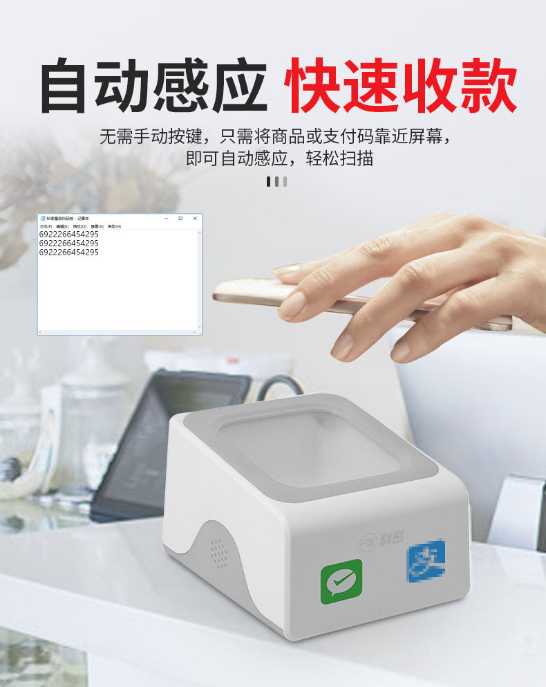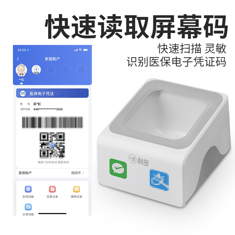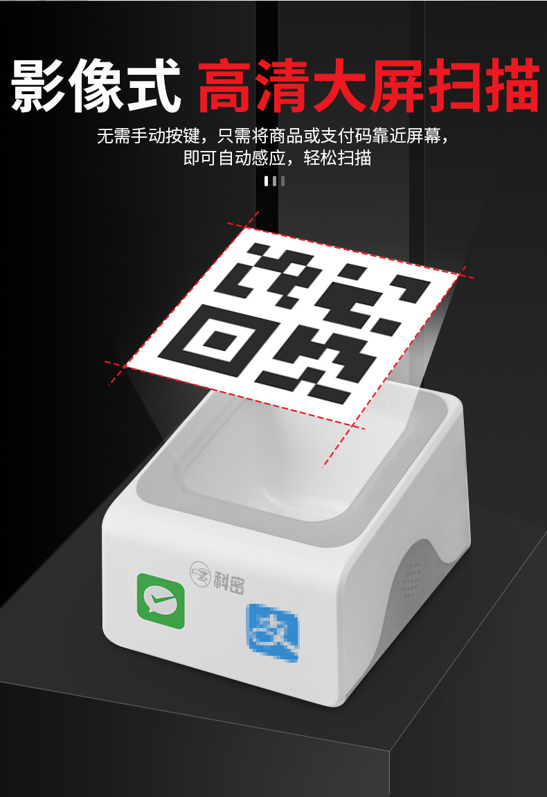 科密掃碼盒子 掃碼收款收銀支付盒子掃描器 二維碼掃描槍商品醫(yī)保條碼掃描支持屏幕碼