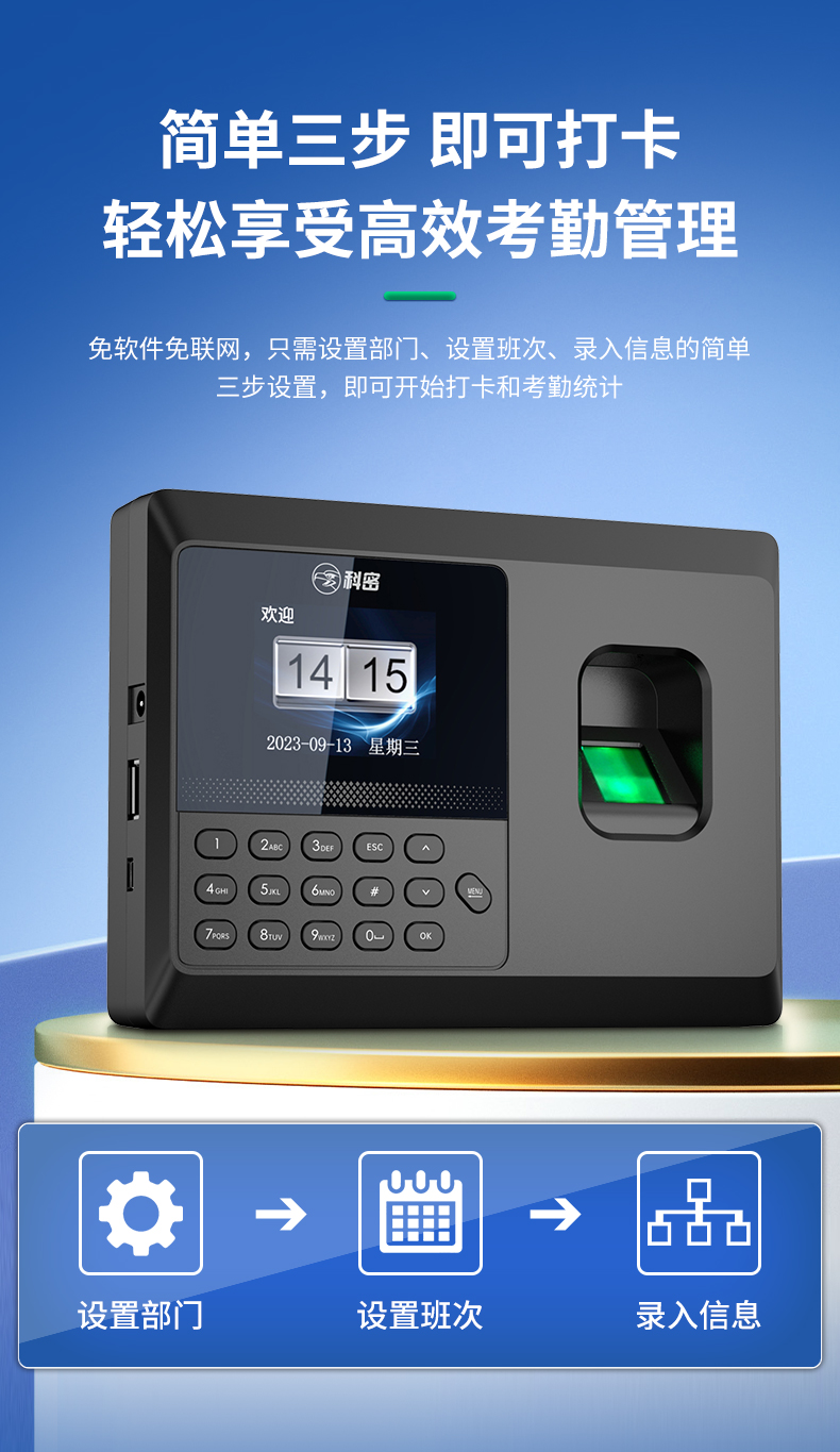 科密(comet) 指紋識(shí)別考勤機(jī) 彩屏指紋考勤機(jī)打卡機(jī)卡鐘 免網(wǎng)絡(luò)免軟件 設(shè)置簡(jiǎn)單 自動(dòng)生成報(bào)表 E101