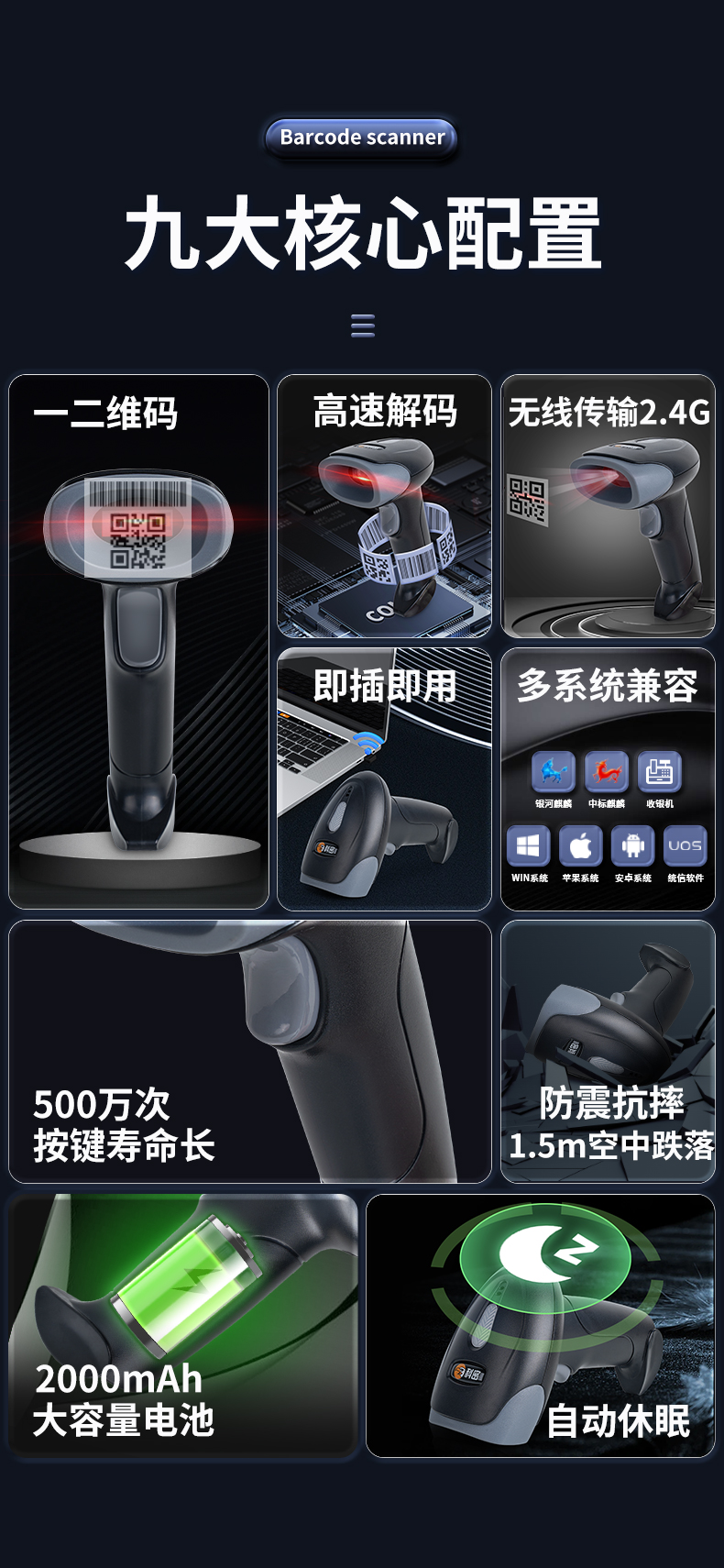 科密掃碼槍無線二維碼掃描槍藥店掃碼槍醫(yī)用倉儲快遞商品條碼槍