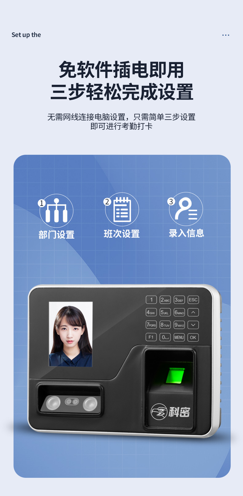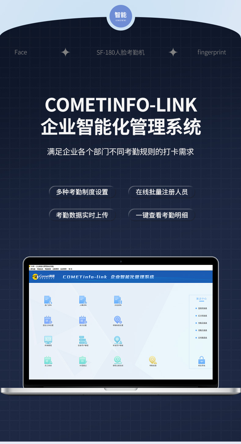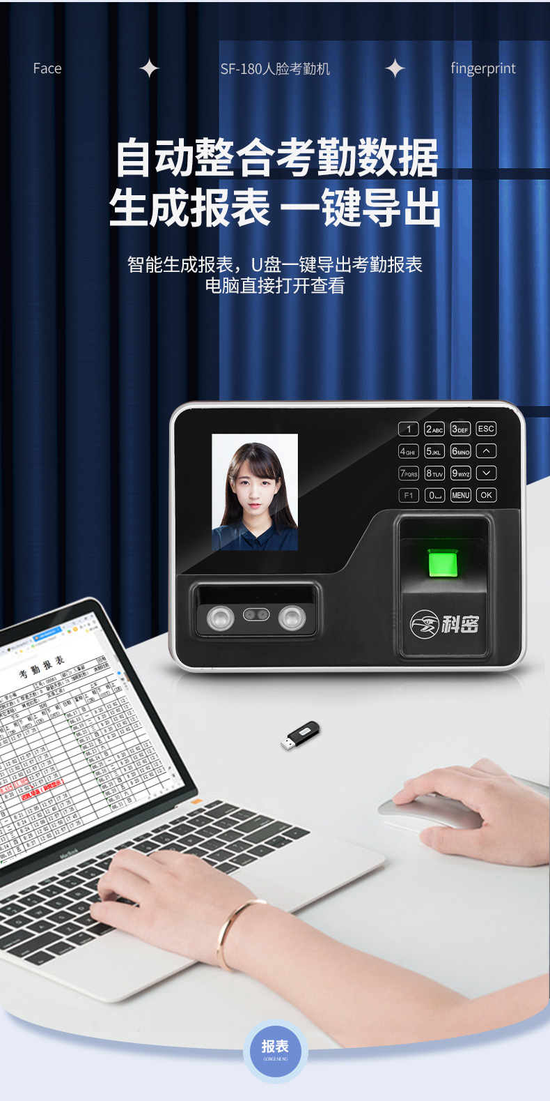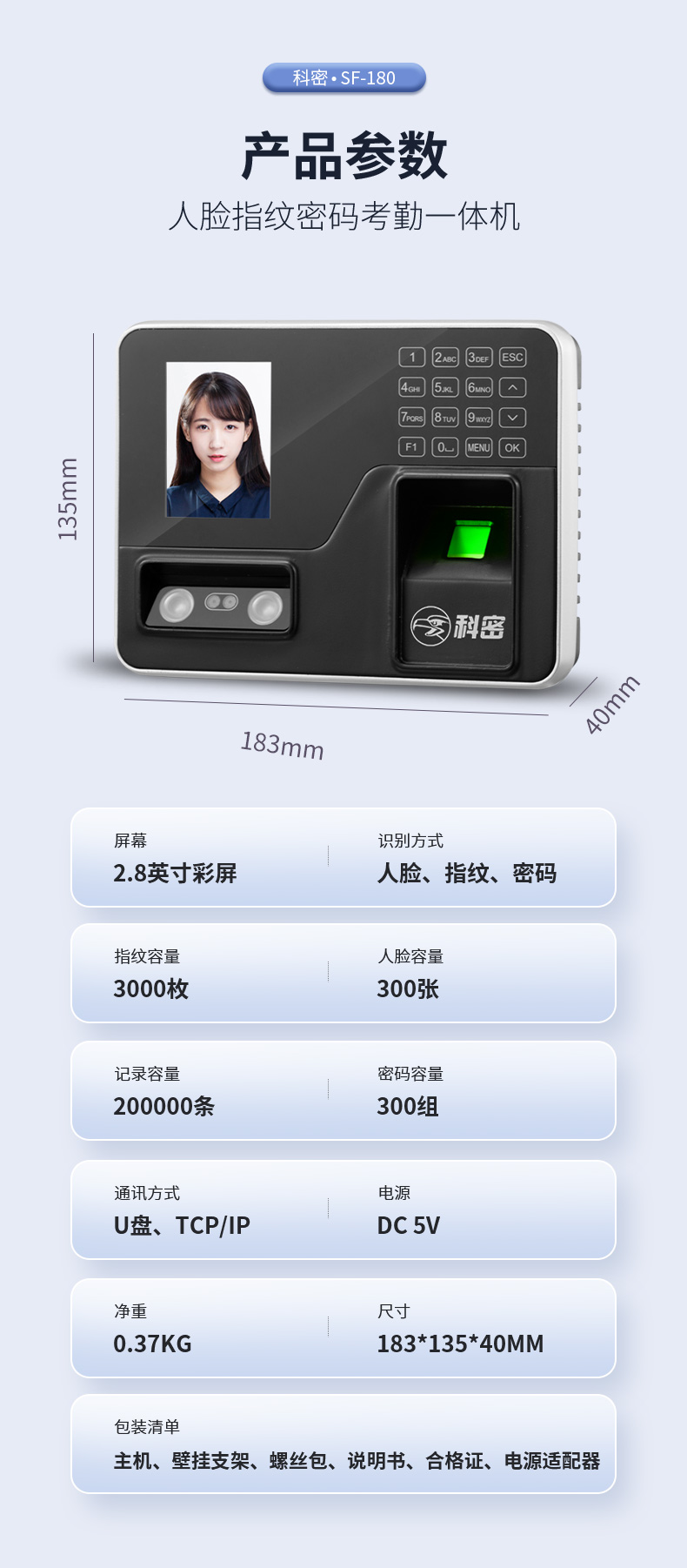 科密(comet) 人臉指紋混合識(shí)別考勤機(jī) 無接觸打卡面部臉部識(shí)別考勤機(jī) 脫機(jī)考勤自動(dòng)生成報(bào)表 SF-180
