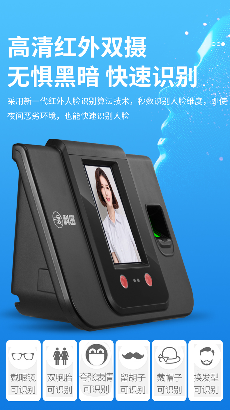 科密(comet) 人臉指紋混合識別考勤機 面部臉部識別考勤機 帶一卡通考勤軟件SF-380 500人臉 5000指紋 SF-380