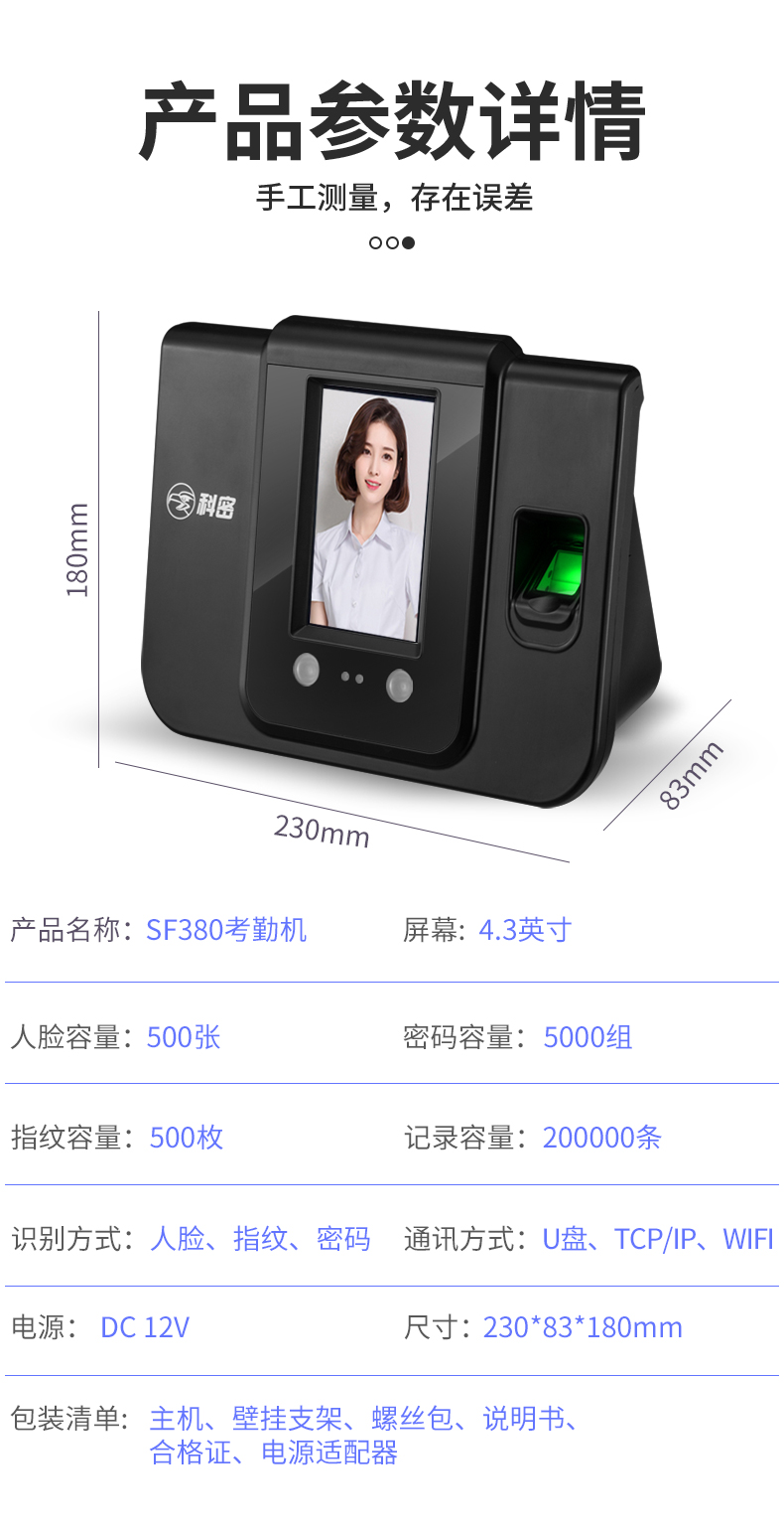 SF-380人臉指紋混合識別考勤機